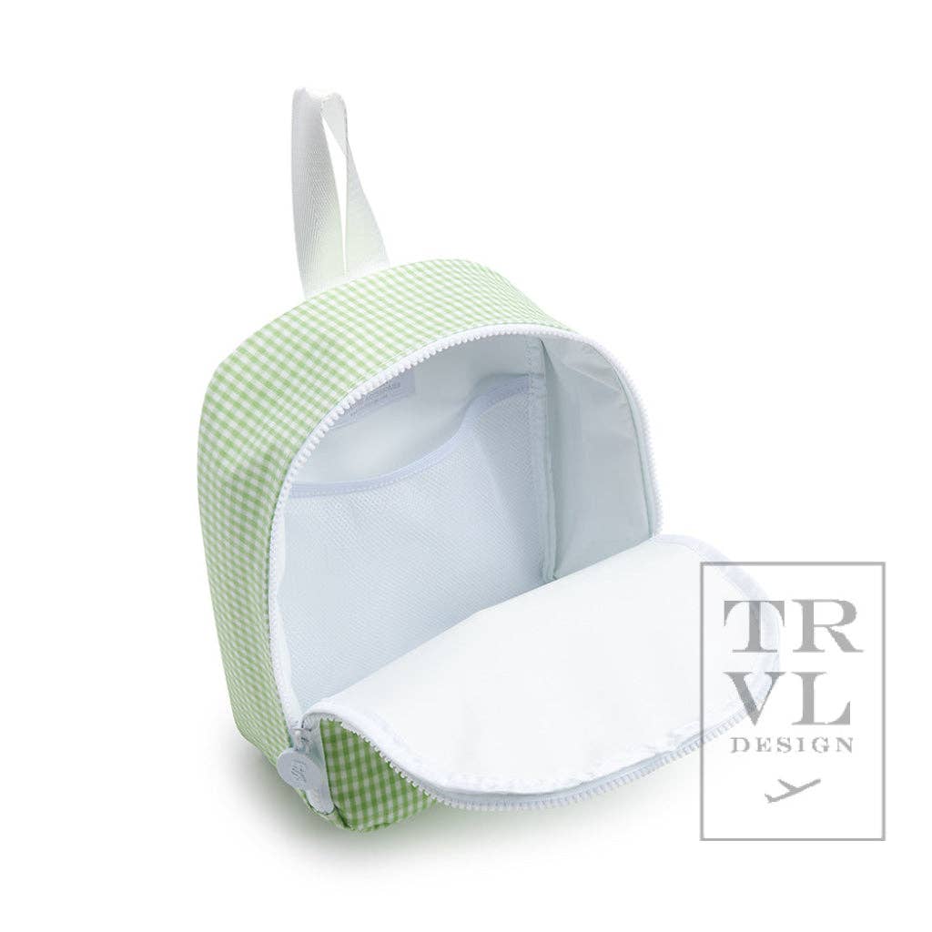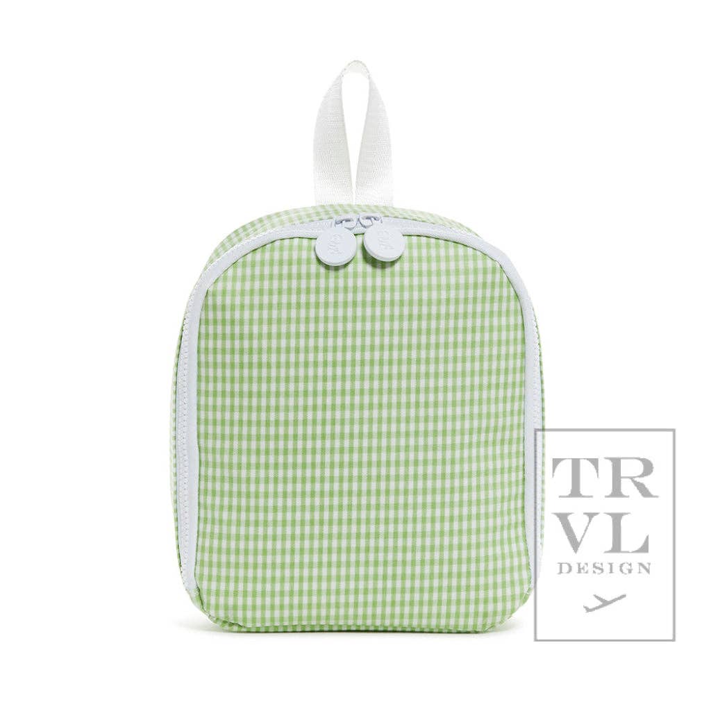 Our Bring It! Lunch bag fits many bento style boxes and It’s compact enough to fit inside our backpacks. The signature 2-way zip design makes it easy to open and the front panel open fully to make a surface to eat on. Perfect storage for baby bottles too and has an inside mesh pocket for ice packs, love notes and a beverage. * Size: 8"l (base) x 9.5"h x 4"d / 7"l (top) * Signature coated cotton with our thin eco-friendly matte coating* * Lined in poly twill with interior mesh pocket * 2-way puller on Chunky zip * Water and stain resistant & wipeable inside and out * Care: wipe with a clean damp cloth or machine washable - Cool/Gentle/Line Dry