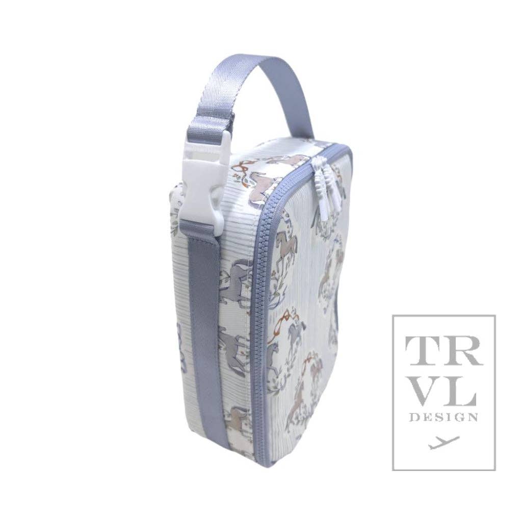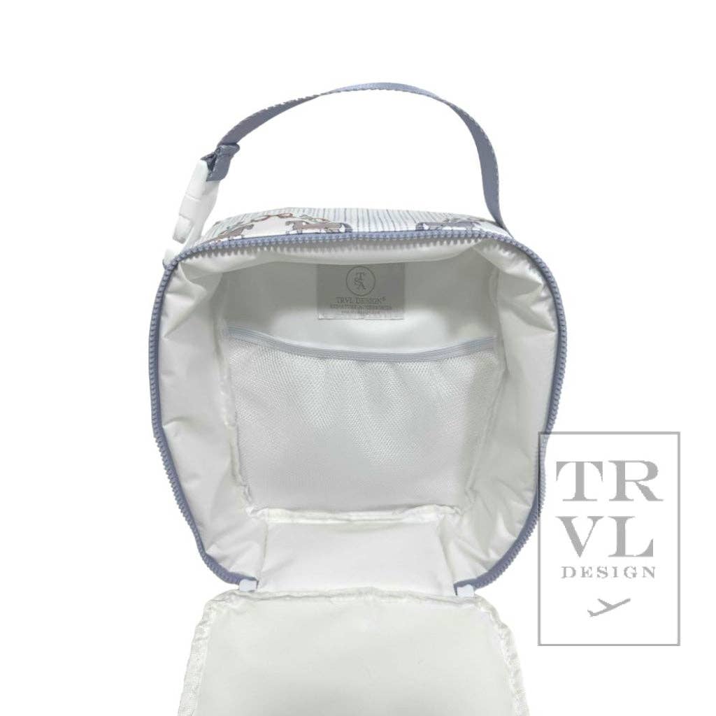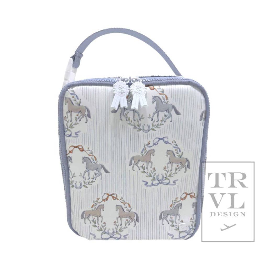 Lunch Box Insulated Lunch Bag - Winners Circle *New! In Stock Our Lunch Box bag makes for the perfect grab and go top handle lunch bag. Easily can hold a full size bento box and has a slim fit to pack inside any backpack. Built with a top handle buckle closure that can also easily attach to a stroller or bag for a hands free living. Wipeable inside and out and machine washable. * Size: 9"l x 10"h x 3.5"d * Signature * Lined in poly twill with interior mesh pocket * 2-way puller on Chunky zipper * Water and stain resistant & wipeable inside and out * Care: wipe with a clean damp cloth or machine washable - Cool/Gentle/Line Dry ==
