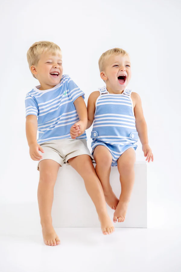 Introducing the Carter Crewneck in a delightful Saddle Ridge Stripe design! This charming pullover features a cheerful Sarasota Sky and Worth Ave White color combo that's perfect for layering through every season. The classic crewneck style keeps things timeless while the striped pattern adds a fun pop of personality. Soft, comfortable, and ready for playtime or everyday adventures—your little one will love reaching for this wardrobe staple again and again!