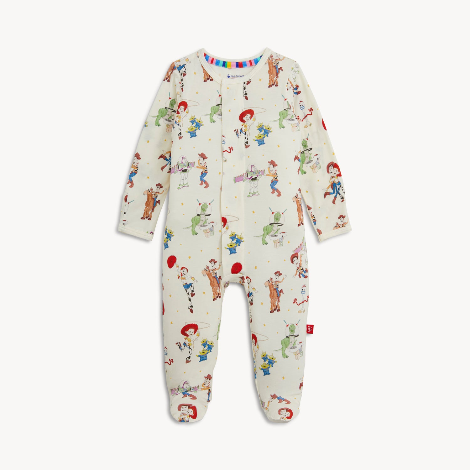 Dress your little one in adorable Disney style with the Toy Story Woody & Friends Magnetic Footie. Featuring beloved characters from Toy Story, this cozy footie brings playful charm to baby’s wardrobe. Made from soft, gentle fabric, it keeps your baby comfortable throughout the day and night, while the magnetic closures allow for quick and easy dressing and diaper changes.
