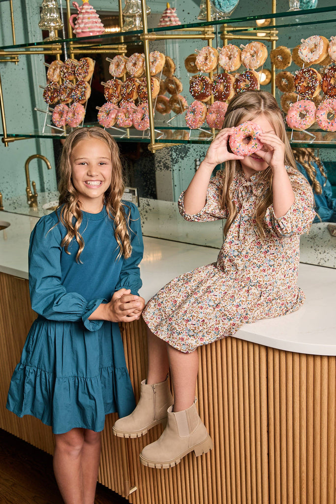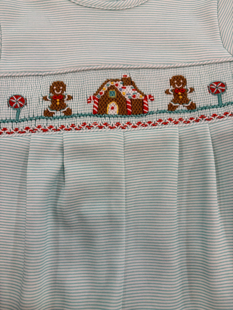 Gingerbread House Girl's Aqua Knit Stripe Bishop