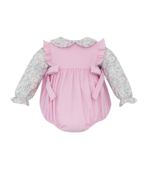 Girls Pink Corduroy Bubble with Pink Liberty Floral Blouse