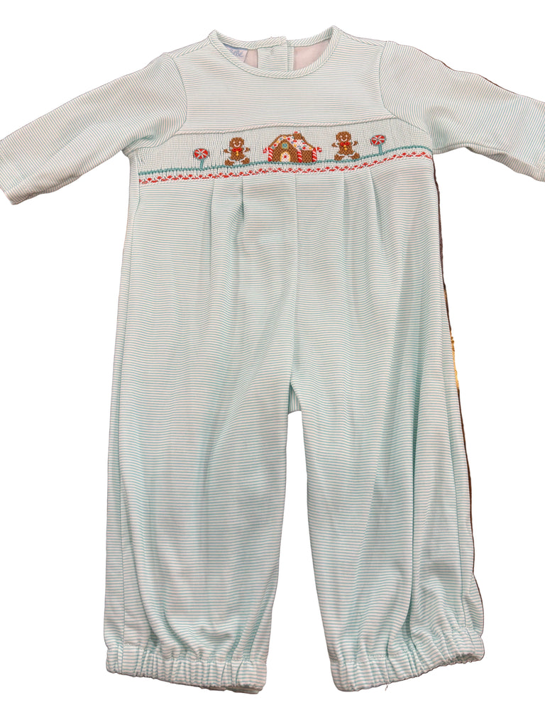 Gingerbread House Boy's Aqua Knit Stripe Long Footie