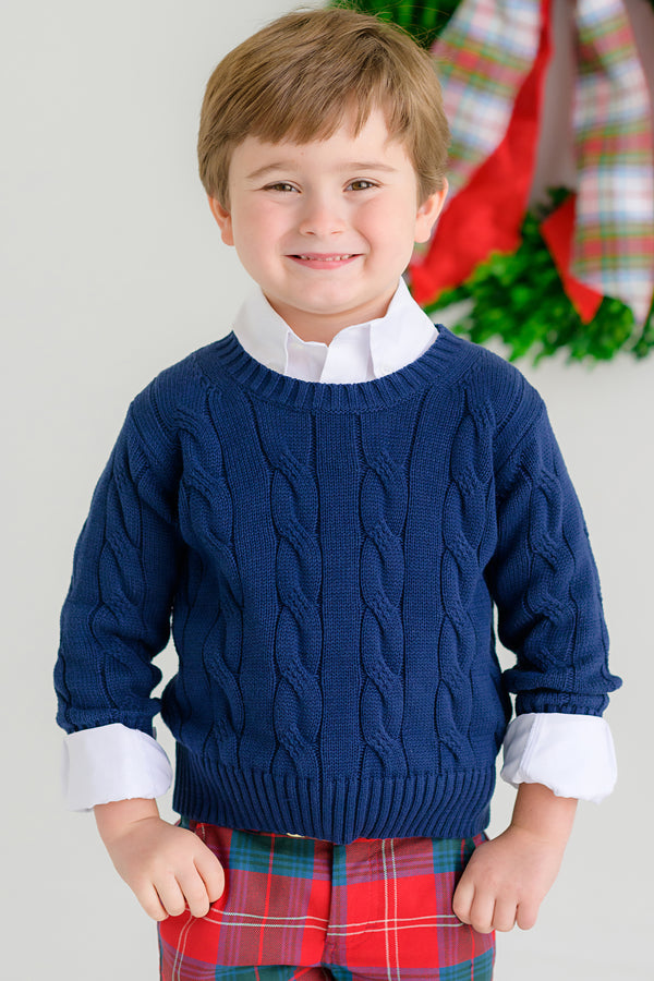 X'Mas Train Light Blue Knit Boy's Long Footie