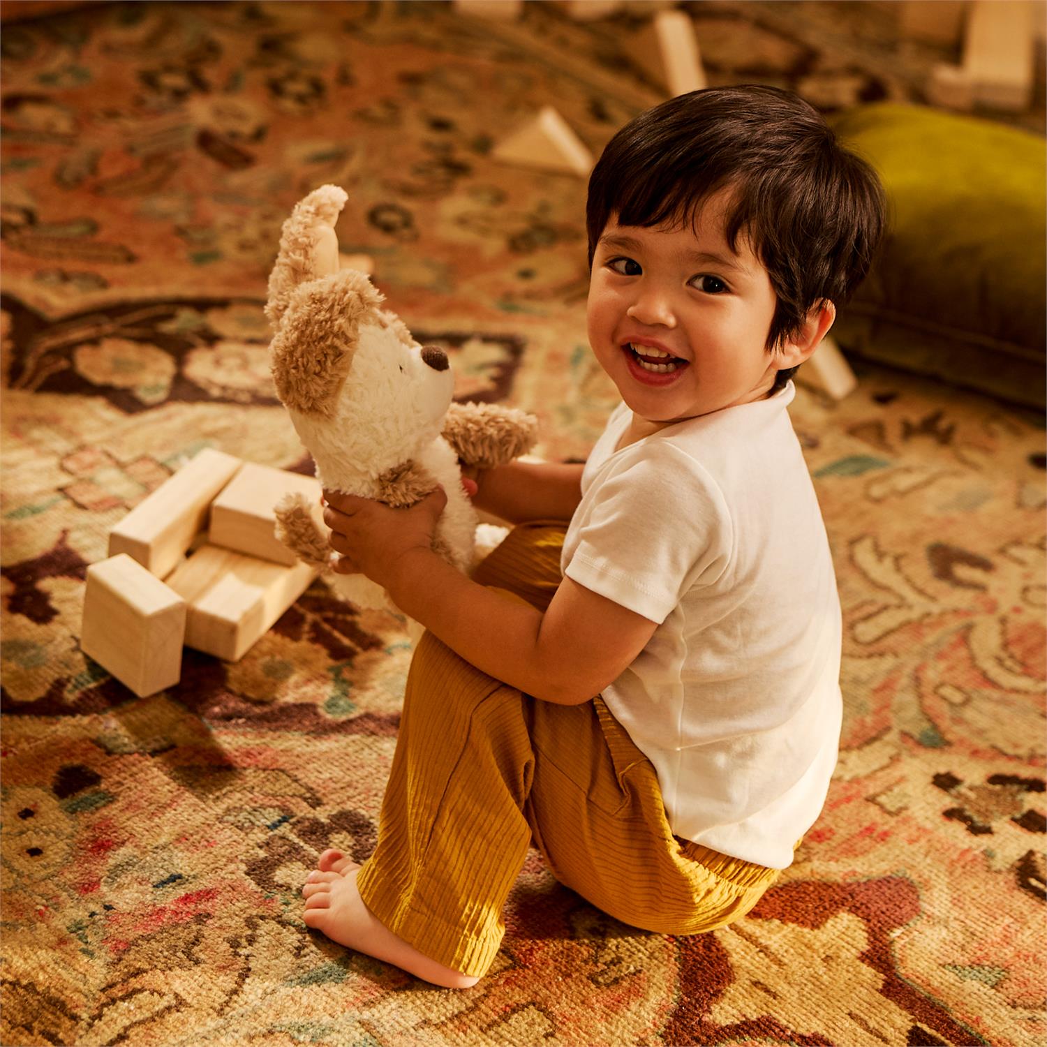 Peeki the puppy is here in an all-new format! Our innovative, award-winning plush puppy dog is here in a smaller, travel-friendly size with a simpler squeeze-and-play feature that everyone can use to play peek-a-boo with baby. Simply press Peeki`s tummy with a gentle squeeze and its short brown ears flop downward, covering its eyes to hide and leaving you in control of the game. Peeki`s ears then pop back up as soon as you release the pressure, letting you decide when the surprise occurs. Customize every peek-a-boo session to your little one`s preferences and speed, using Peeki to bond in a whole new way! Peeki`s new 7 size and floppy limbs enable it to sit upright for display or let its legs dangle down playfully, making an adorable baby shower gift and cuddly soft toy. This innovative baby toy was also made thoughtfully, with the whole family in mind: with only minimal pressure needed to press her tummy, everyone can play comfortably and easily, from siblings all the way to grandma! Batteries not required. Safe for little ones aged 0 and up. Hand-wash only.