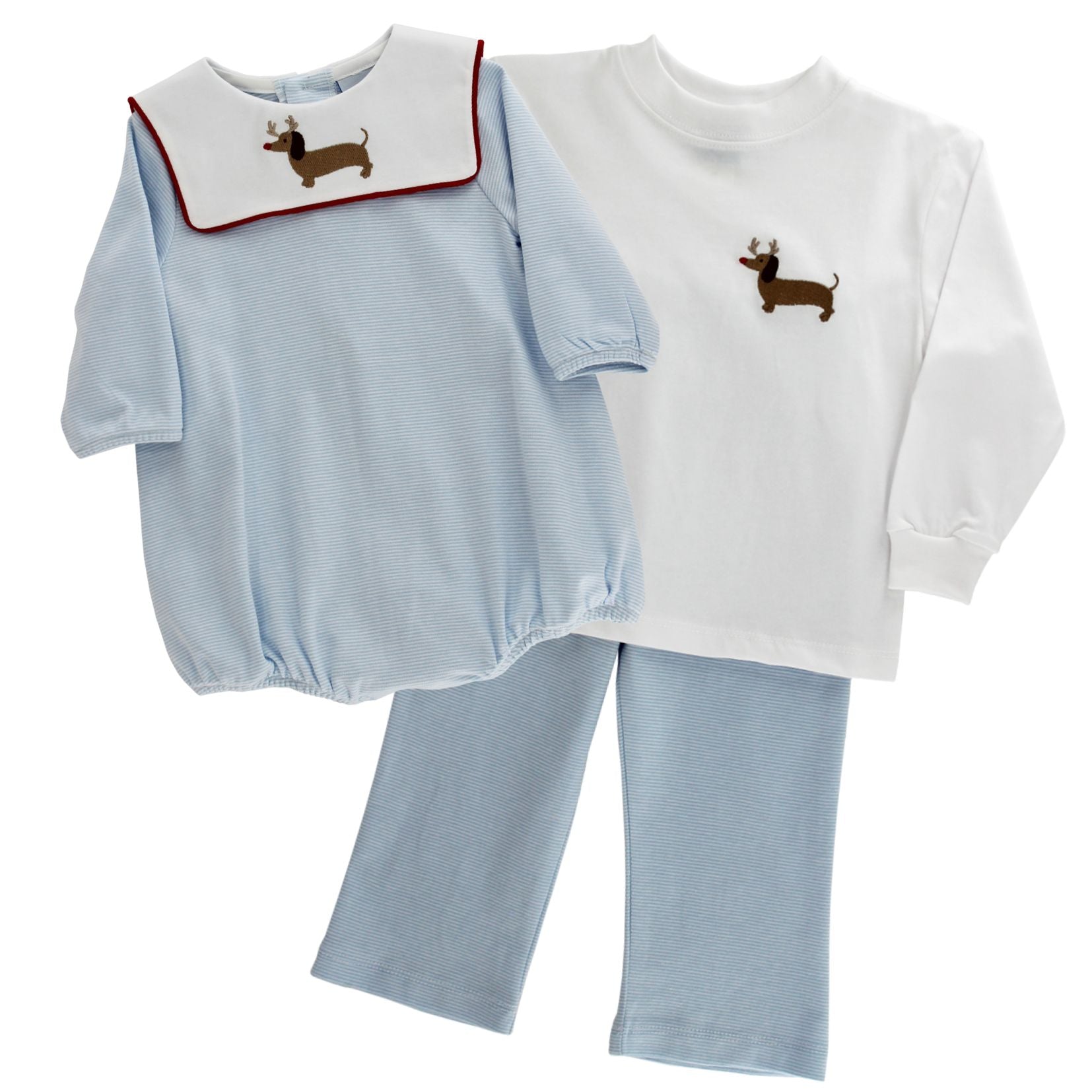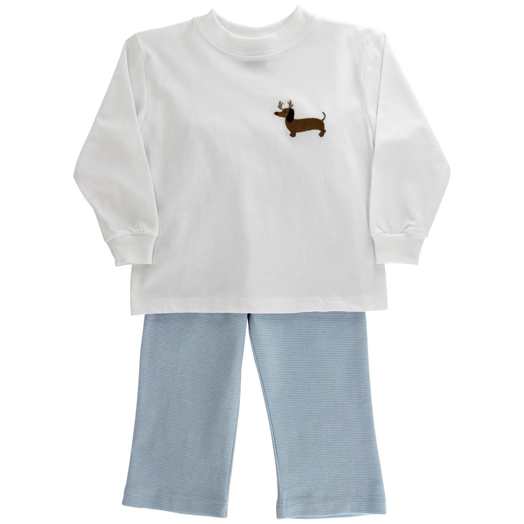 Get him holiday ready with the Reindog Ralph Boys Pant Set. This comfortable knit set includes a long sleeve top featuring a cheerful reindeer dog and matching knit pants. It’s perfect for school, holiday festivities or family photos. Soft and irresistibly cute, this set adds a touch of whimsy to any winter wardrobe while keeping him cozy and stylish.