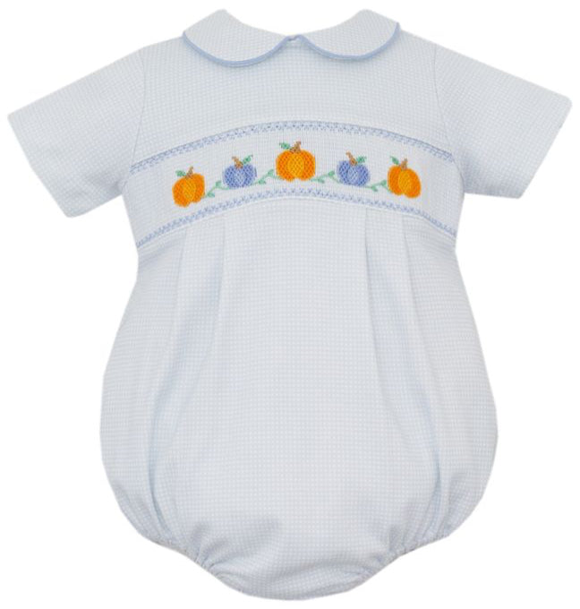 Dress your little one in playful charm with this Pumpkin Light Blue Knit Check Boy's Bubble. Crafted in a soft knit fabric, its light blue check pattern adds a fresh, fun touch to baby’s wardrobe. The bubble silhouette offers roomy comfort for active days, while short sleeves keep your child cool and happy. Perfect for sunny adventures or cozy indoor play, this outfit combines ease and cuteness in one delightful package.