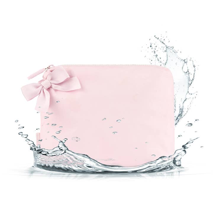The Special Edition Bow Waterproof Beach Zip Pouch is your new go-to bikini bag, makeup bag, tote bag organizer and more! Stash sunscreen, a wet bathing suit, or tanning oil inside to keep your tote dry, clean, and organized. Crafted from waterproof material, the zip pouch also protects your phone, e-reader, or wallet from sand and splashes. This pouch features a statement bow that's as sweet as it is sophisticated Toss it in your tote for beach trips, pool days, or travel, then cold wash and air dry when it needs a refresh.