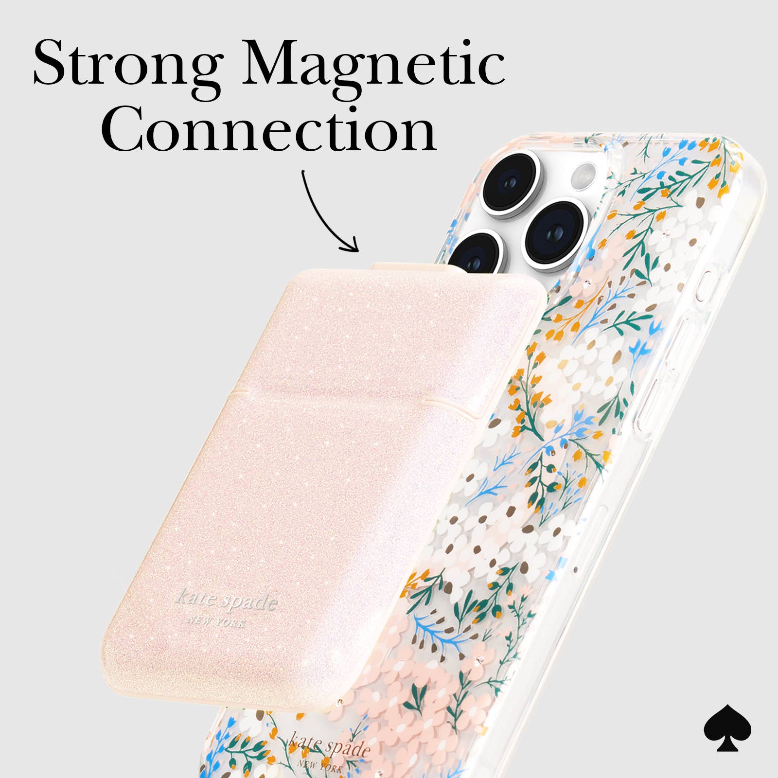 We've got you covered! The kate spade new york MagSafe Flip Wallet fully covers your essential cards, cash, and ID with a magnetic snap closure. This wallet features strong built-in magnets that connect to the back of your MagSafe-compatible phone case.