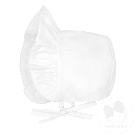 Keep little ones safe and chic on bright days with this darling bonnet! With UPF 50+ protection and a delightfully sweet ruffle and moonstitch edge, it's the perfect accessory for outdoor adventures or special occasions. Your little Miss Sunshine will look and feel her cutest with a dose of sartorial sunshine! 100% cotton.