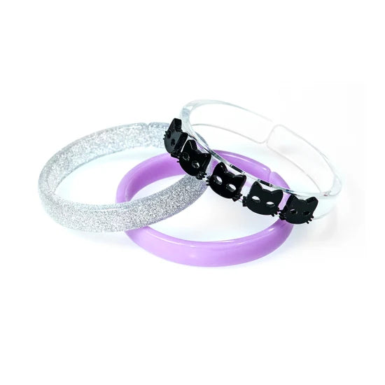Multi Black Cat Silver Glitter+ Light Purple Bangle Set