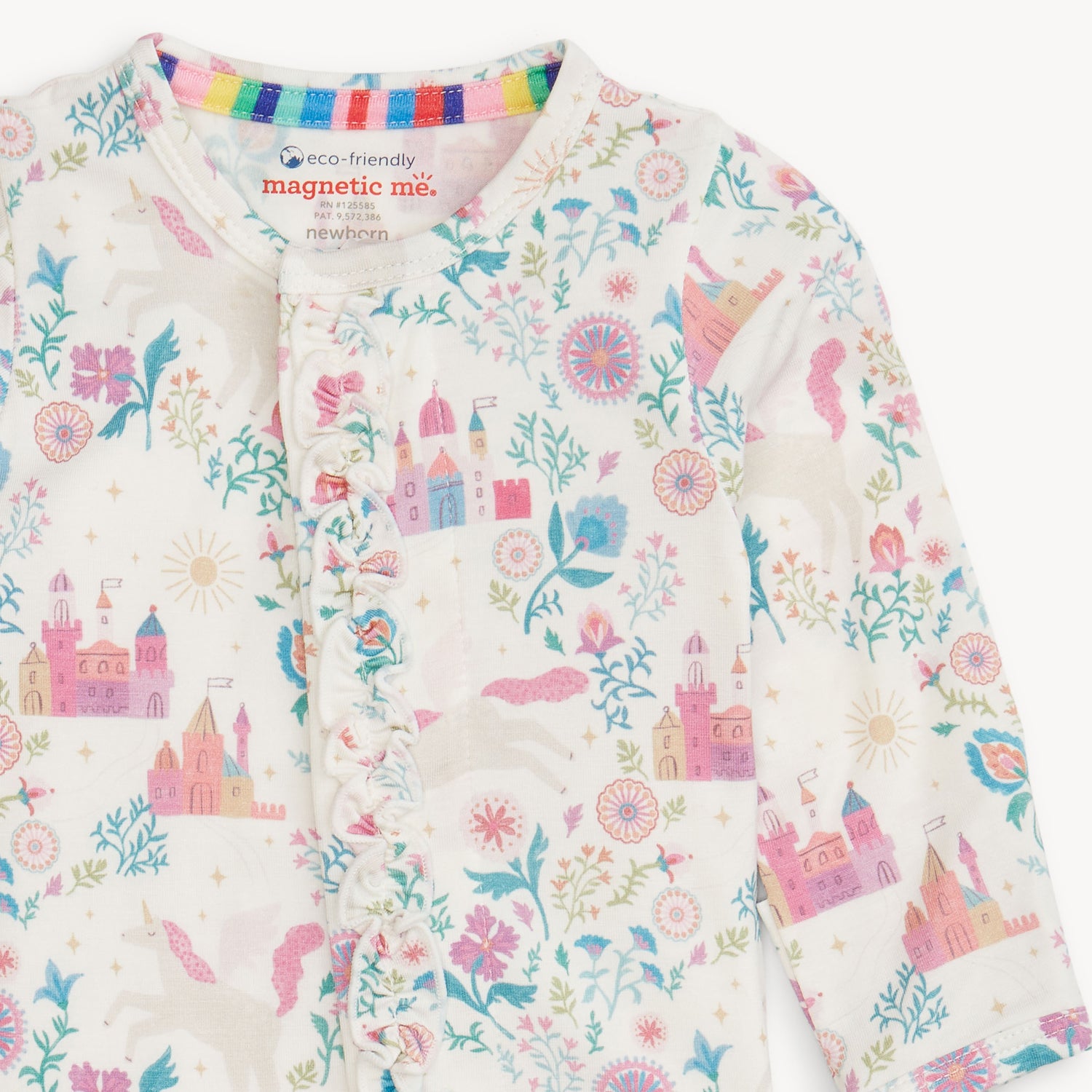 Wrap your little one in whimsical comfort with the Tail Of Magic Modal Footie W/ Ruffle. Made from soft modal fabric, this footie offers gentle coziness perfect for playtime or bedtime. The charming ruffle detail adds a dash of fun flair, making every move magical and sweet. Easy to wear and delightfully cute, it’s an enchanting addition to any child's wardrobe.