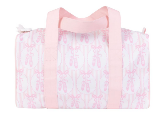 Coated, clean, and cute! This perfectly sized mini duffle for your extra shoes and leotards is your ballet bestie! Pairs perfectly with matching Go Bags, Duffle Bag, and Garment Bag.