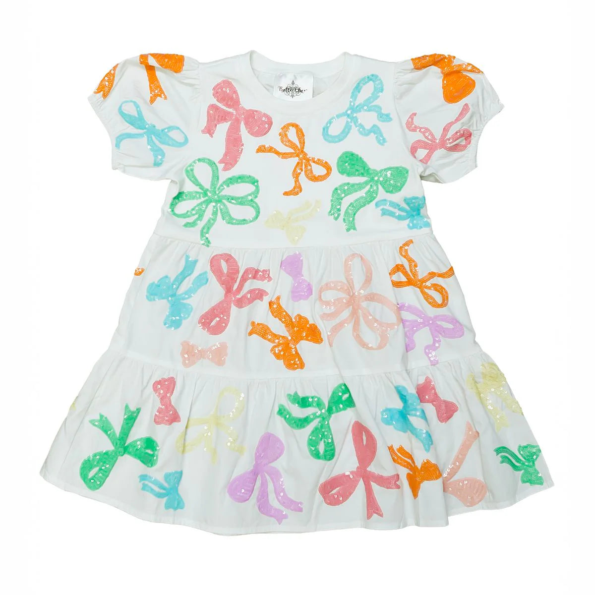Let your little one twirl in style with this adorable All Over Bows Dress! Featuring charming bows scattered across the entire design, this playful piece brings instant personality to any occasion. The sweet bow pattern makes it perfect for parties, playdates, or everyday adventures. Crafted for comfort and movement, it's a dress that lets kids be kids while looking absolutely precious. A wardrobe essential that celebrates childhood joy!