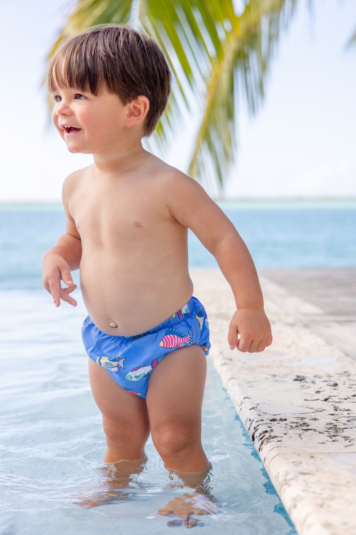 Perfect for sunny beach days, the Beach Bum Cover in Here Fishy Fishy adds a fun and playful touch to your little one’s swimwear. Featuring a charming fish-themed print, this lightweight cover-up is designed for easy layering over swimsuits. Comfortable and breezy, it’s ideal for trips to the beach, poolside lounging, or seaside adventures.