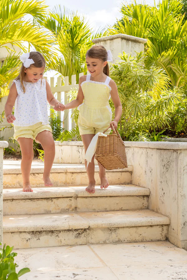 Introduce your little one to effortless style with the Ruthie Romper in cheerful York Yellow and crisp Worth Ave White. This charming two-tone design combines vibrant color with classic sophistication, perfect for playdates, family outings, or everyday adventures. The playful color-blocking makes getting dressed fun, while the romper silhouette keeps kids comfortable and ready to move. A wardrobe essential that brings joy and personality to any occasion!