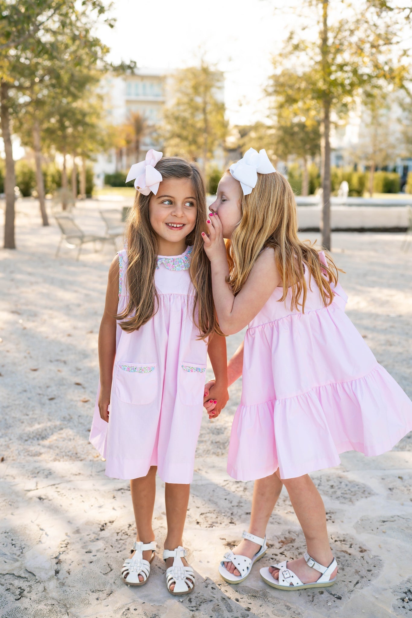Our Savannah Sundress was our best-selling style last Spring and Summer so we had to bring her back in the most versatile Blakeney Ballet light pink in an expanded size range of 4T to 14. This tiered sundress is fully-lined and easy to wear with an elasticized back waist and hand-tied bow that's sophisticated yet still sweet. Our Savannah Sundress will be one she's excited to wear, and it mixes and matches with most of our Spring/Summer 2025 collection!