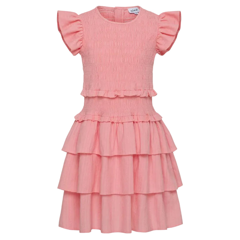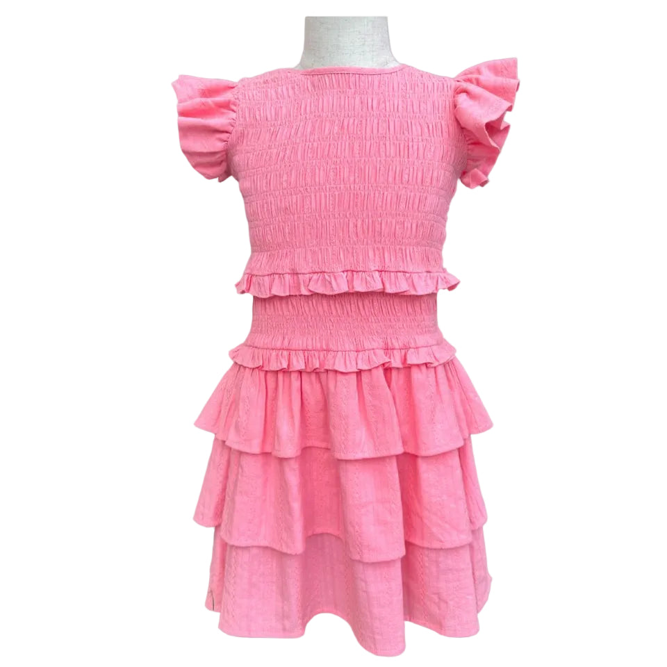 The Claire Dress in cheerful grapefruit is pure twirl-worthy magic! This charming frock features a gathered bodice that hugs just right, paired with delicate flutter sleeves that dance with every movement. The tiered skirt adds playful dimension and endless twirling potential—perfect for making any day feel special. Whether she's heading to a party or just playing in the backyard, this dress brings joy and style together in one adorable package.