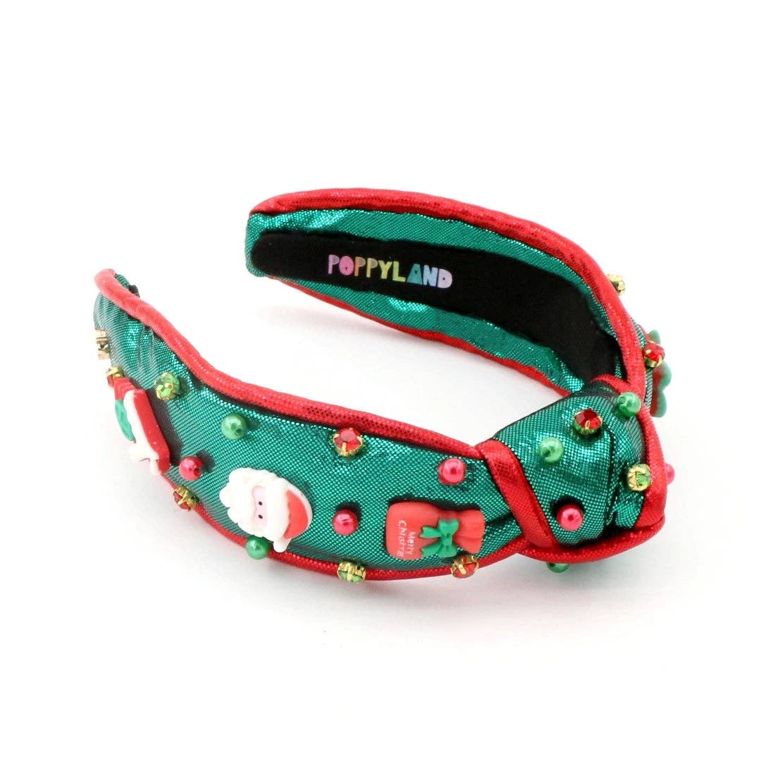 Elevate your holiday wardrobe with the Ho Ho Ho Headband from Poppyland, your kingdom of cuteness. This headband features a red and green shimmer base adorned with charming Santa, reindeer, and other Christmas motifs, ensuring you sparkle at every festive occasion. Perfectly versatile, it adds a touch of holiday magic to all your seasonal outfits. Get ready to spread some cheer and shine brightly this Christmas with Poppyland's enchanting headwear.