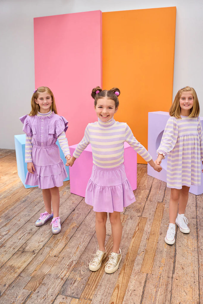 Add a splash of fun to your little one’s wardrobe with the Sally Skort in soft lavender corduroy. Combining the ease of shorts with the charm of a skirt, it’s perfect for playdates and adventures. The cozy corduroy fabric keeps them comfy all day, while the playful lavender hue adds a cheerful pop of color. Easy to wear and even easier to love!