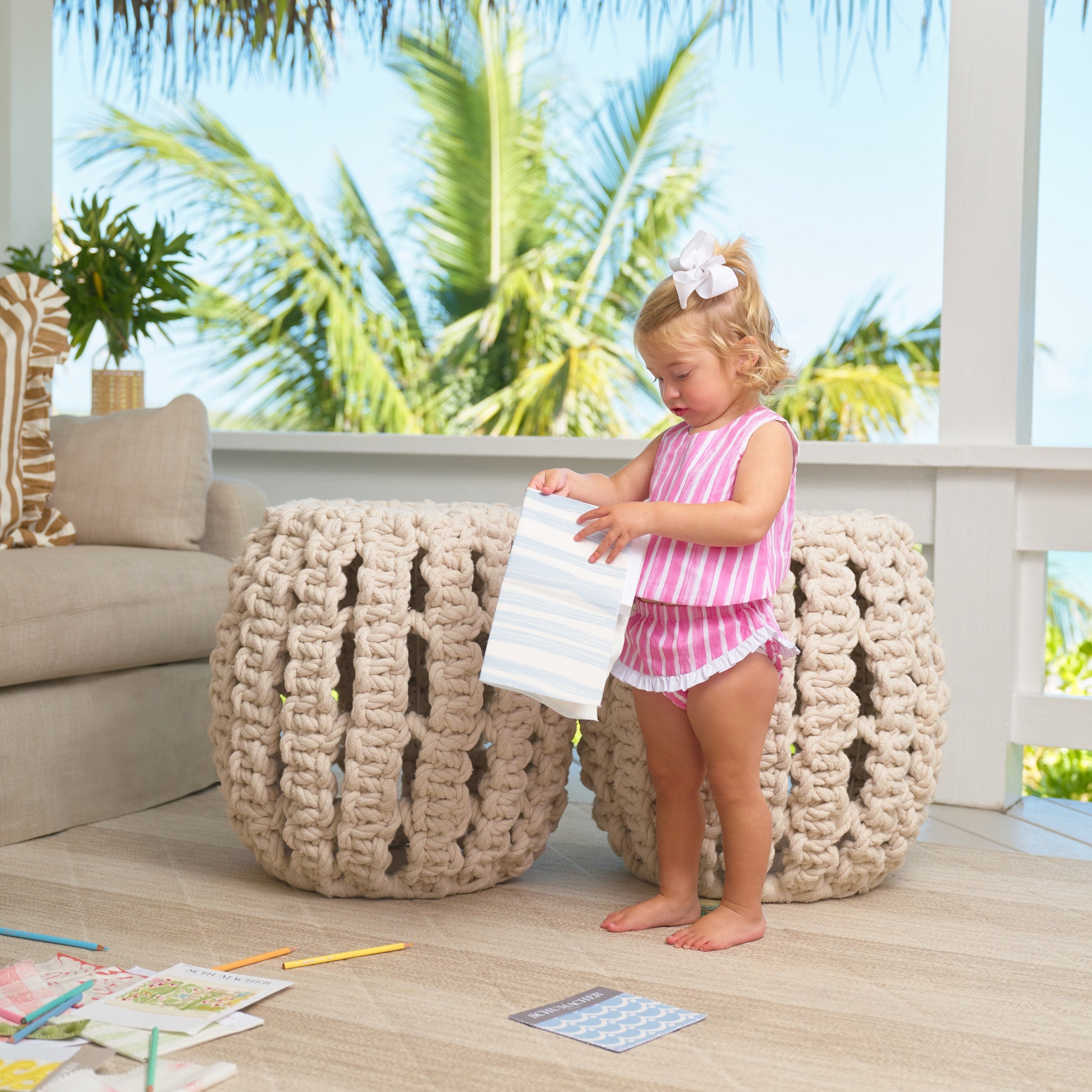 Mary Todd Tab Set Sea Wall Stripe (Winter Park Pink) with Worth Ave White - 12/18M is backordered and will ship as soon as it is back in stock.