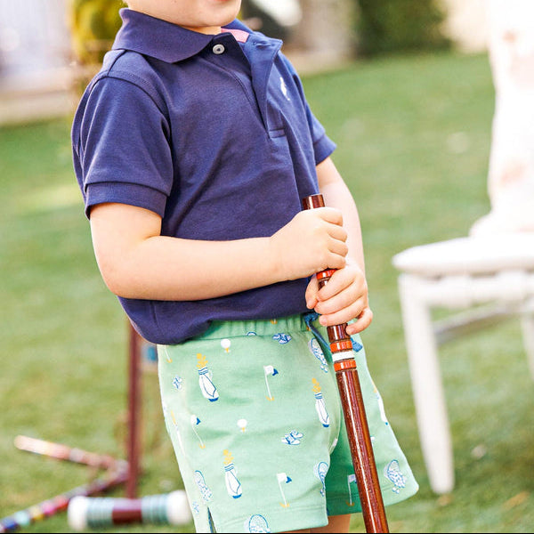 Let him explore in style with our Sullivan Shorts featuring the charming Clubhouse Couture print adorned with a classic Wood Boat Blue stork embroidery. Crafted from premium fabric with a comfortable fit and thoughtful details, these versatile shorts are perfect for playdates and casual adventures. A warm-weather essential that brings timeless style and all-day comfort to his spring and summer wardrobe.