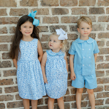 The Summer Blue Dressy Short Set reflects quiet refinement in soft, serene tones. The simple tailoring and pastel hue create a versatile look for spring and summer gatherings. A true classic that balances charm and comfort.
