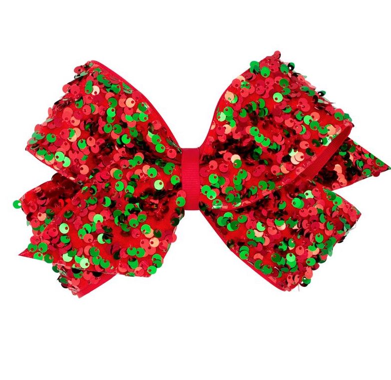 King Red and Green Velvet Sequin and Grosgrain Overlay Hair Bow