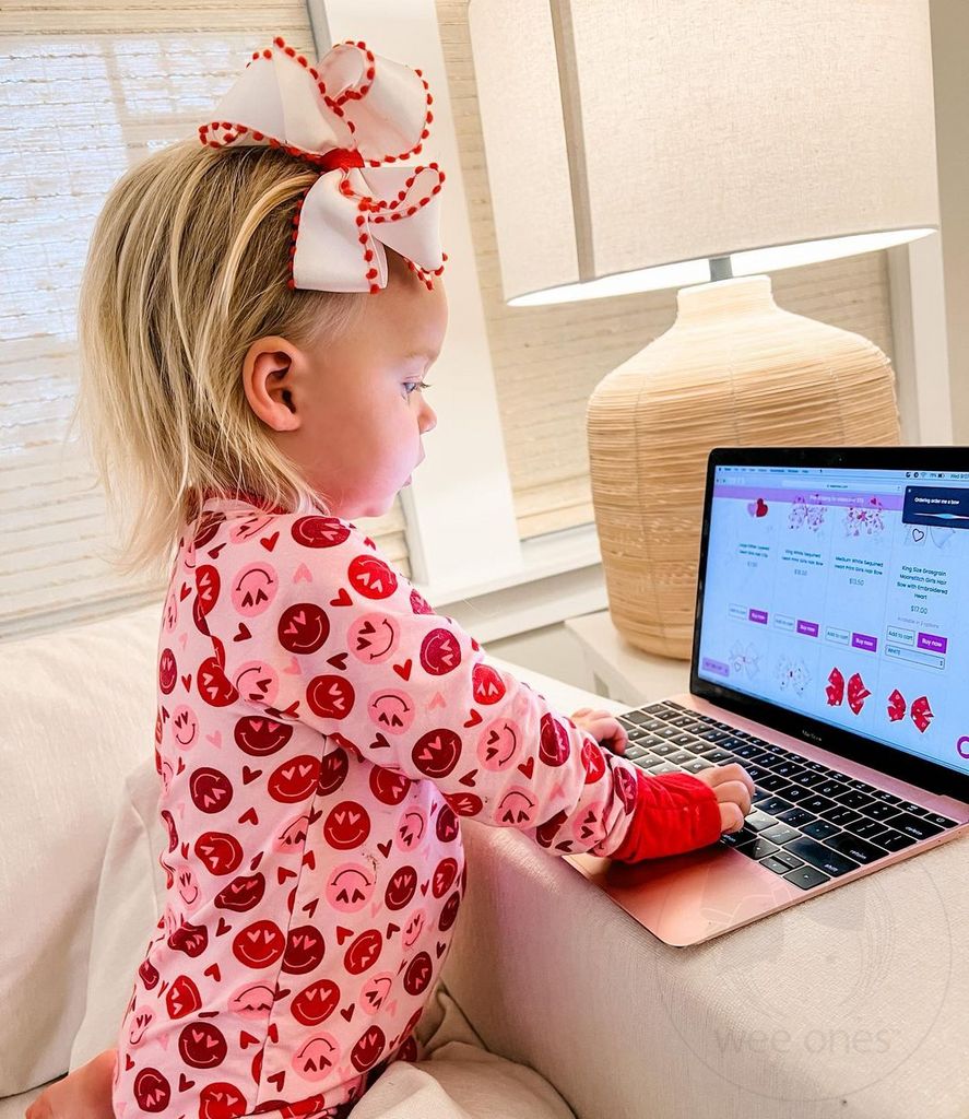 Medium Holiday Style Pom-Pom Edge Grosgrain Overlay Girls Hair Bow