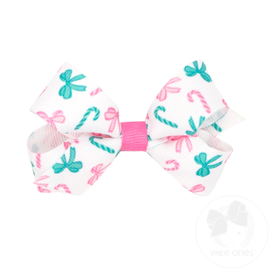 Sweet as a Candy Cane and bright as a Christmas tree! These festive (and Pink!) printed grosgrain hair bows complement any holiday outfit. Perfect for tree trimming, family photos, and class holiday parties! This bow is sure to stay in her hair all day with our patented WeeStay™ no-slip hair clip.
