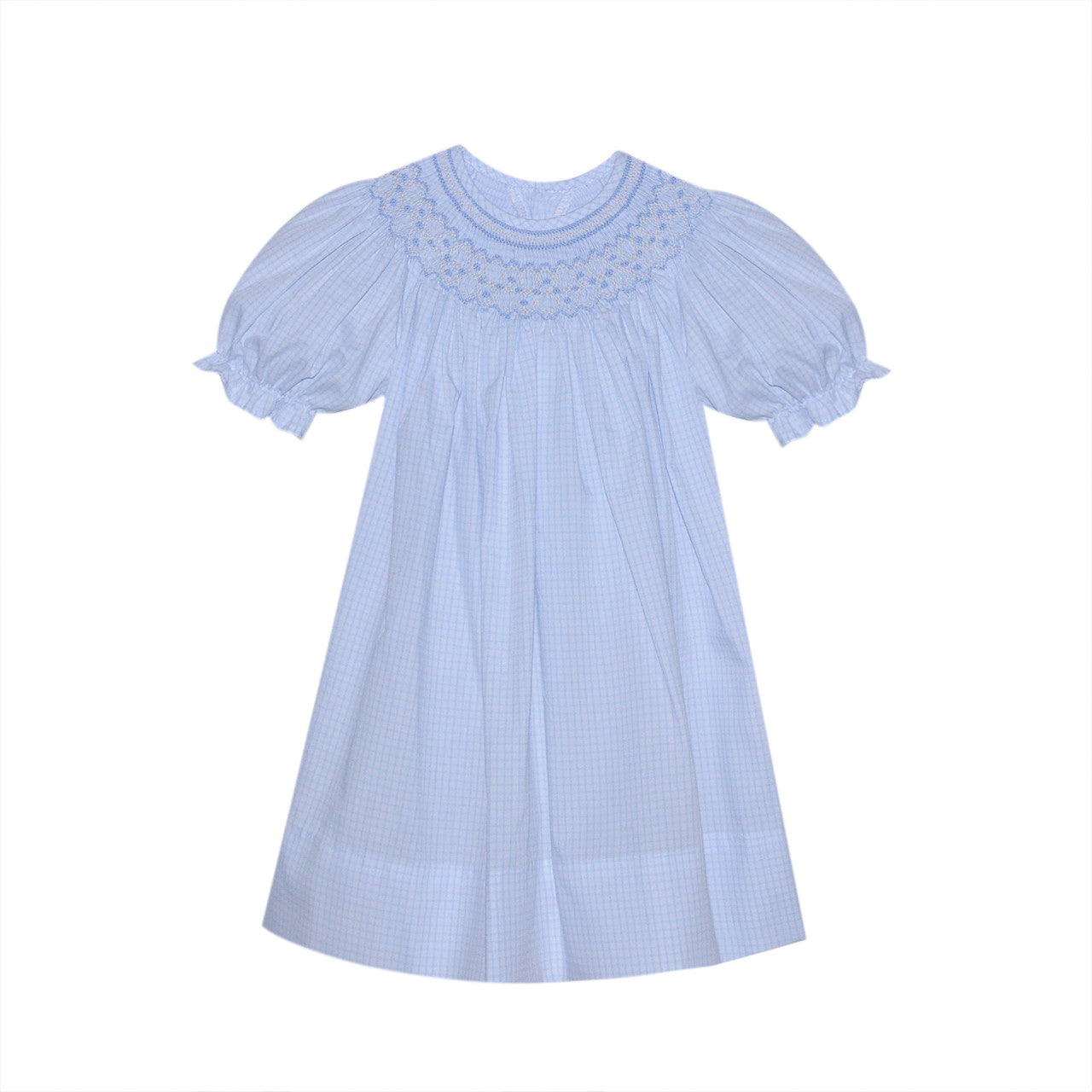 This Blue Savannah Bishop Dress is sure to be your new favorite! Made from a light blue smocked fabric, this dress is both stylish and comfortable. Perfect for any occasion, it's the perfect addition to your wardrobe. Get ready to turn heads and feel confident in this quirky and playful dress. (No more boring outfits for you!)