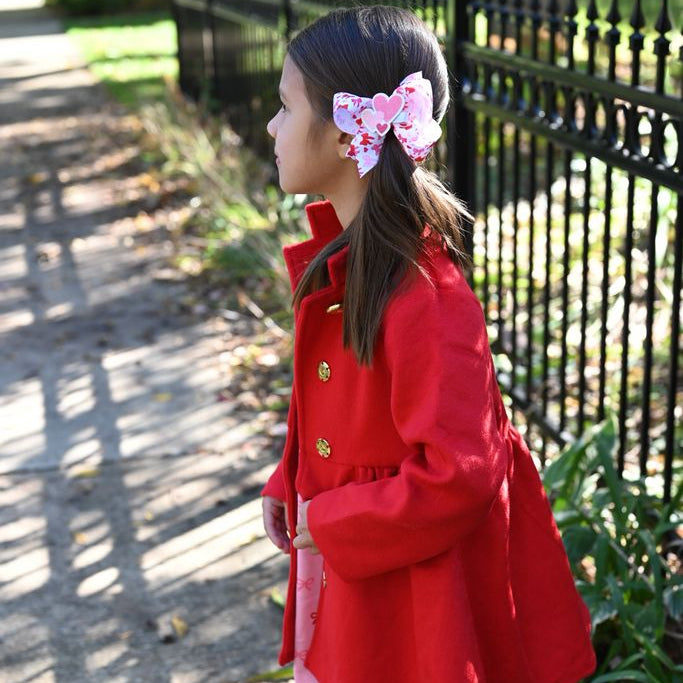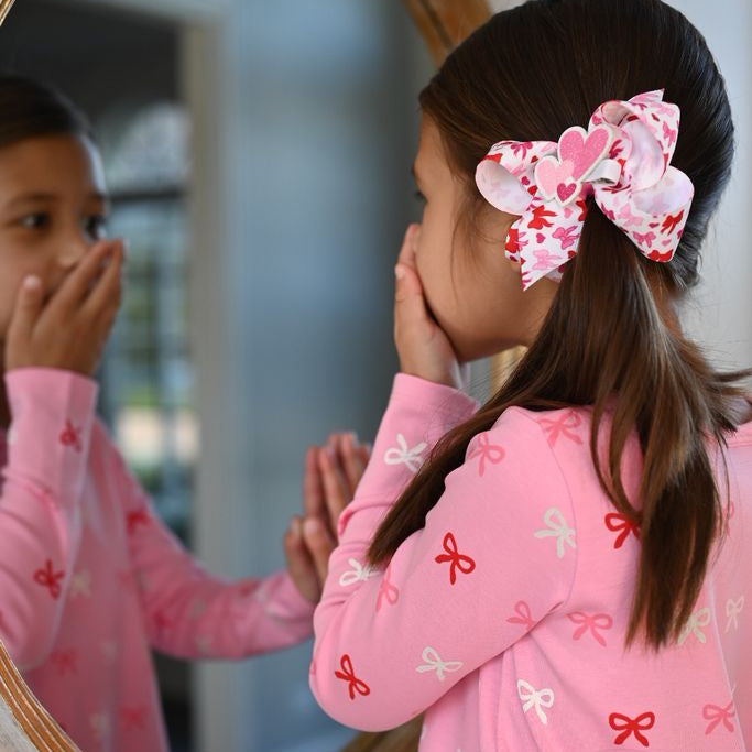 Make her Valentine’s Day shimmer with this adorable glitter heart stacker clip in sparkling shades of red and pink. Just the right size for adding a dash of love to ponytails, pigtails, or stacked on a Wee Ones bow! It’s a festive little sparkler she’ll want to wear long after the candy’s gone. This is sure to stay in her hair all day with our patented WeeStay™ no-slip hair clip.
