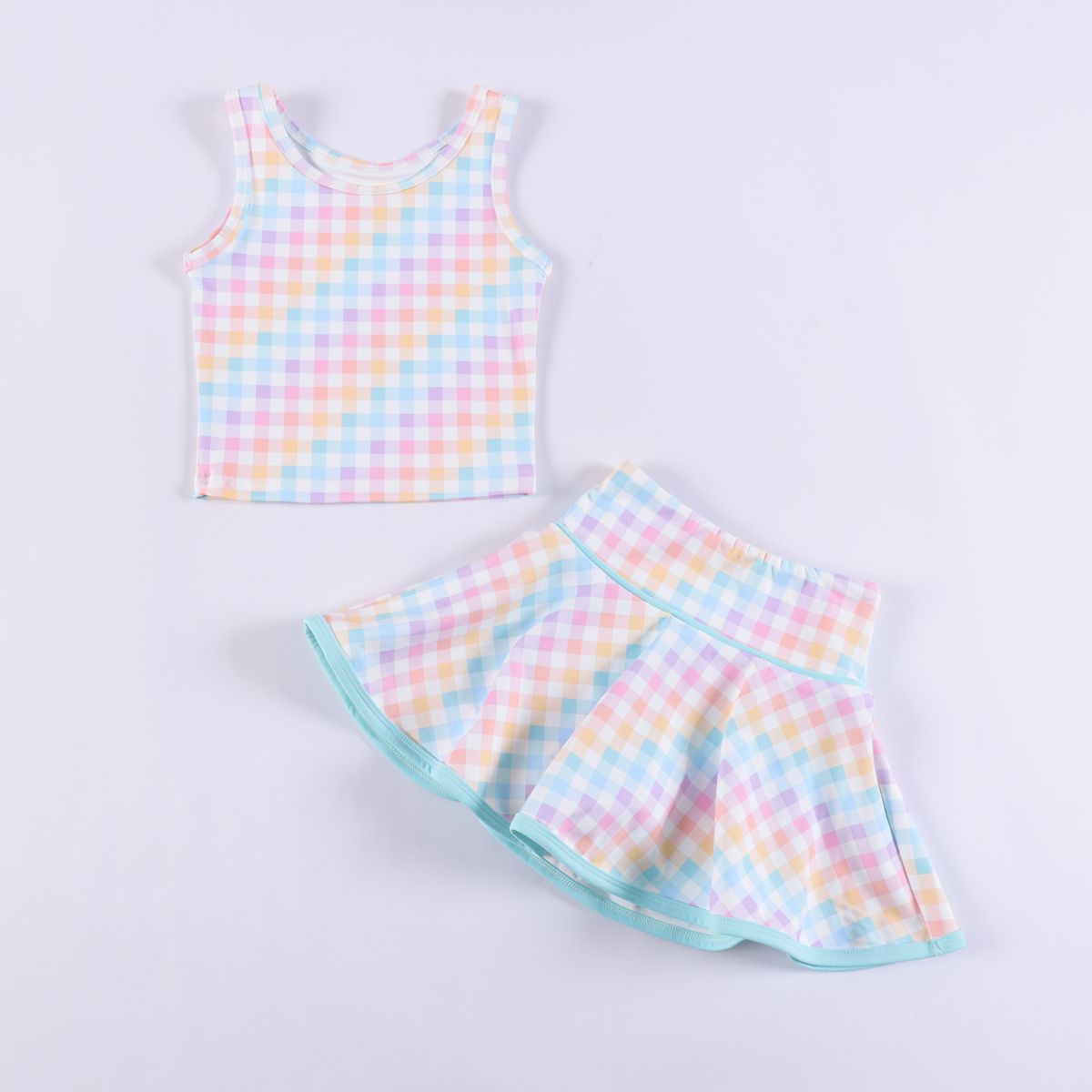 Brighten your little one's wardrobe with the Katherine Set in cheerful rainbow gingham! This delightful two-piece ensemble features a classic gingham pattern in vibrant rainbow hues that kids absolutely love. Perfect for playdates, casual outings, or everyday wear, the Katherine Set combines comfort with eye-catching style. The soft, breathable fabric keeps your child cool and happy all day long, while the timeless gingham design never goes out of style. Watch your kiddo light up in this fun, colorful set that's as playful as they are!