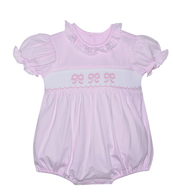 The Baby Sen Pink Bryn Knit Bubble - Bows is perfect for your little one to play and explore in. With its soft knit fabric and adorable bows, they'll be comfortable and stylish at the same time. Plus, it's easy to put on and take off, making dressing time a breeze. (No more struggle!) Let your child's adventurous spirit shine through with this playful outfit.