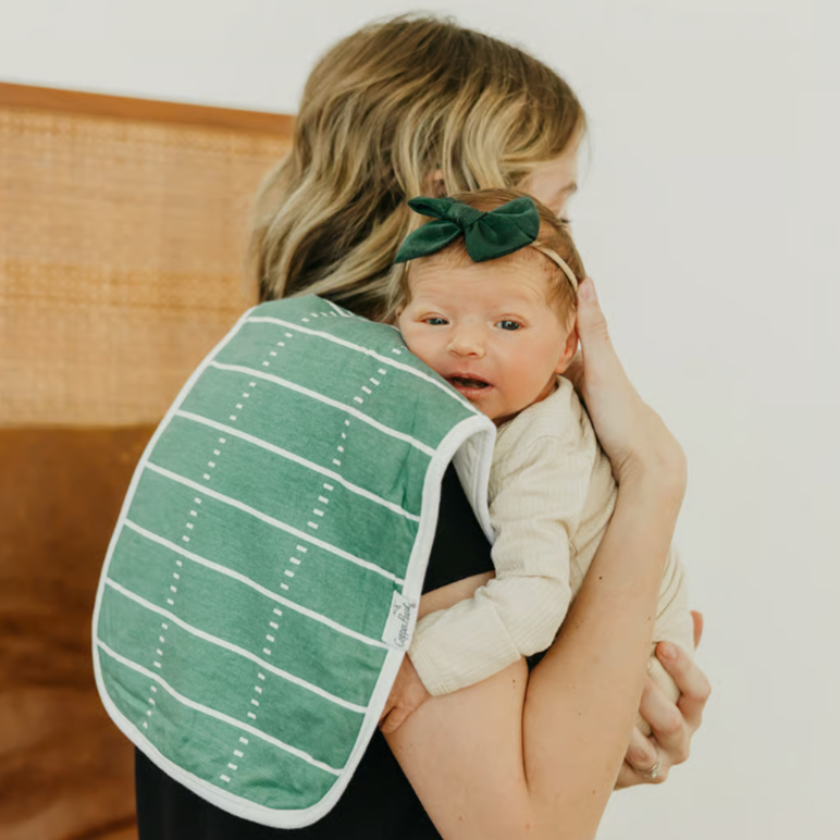 Our burp cloths come in a generous 21x10 inch size, providing greater shoulder coverage (and less outfit changes) for Mom and Dad.