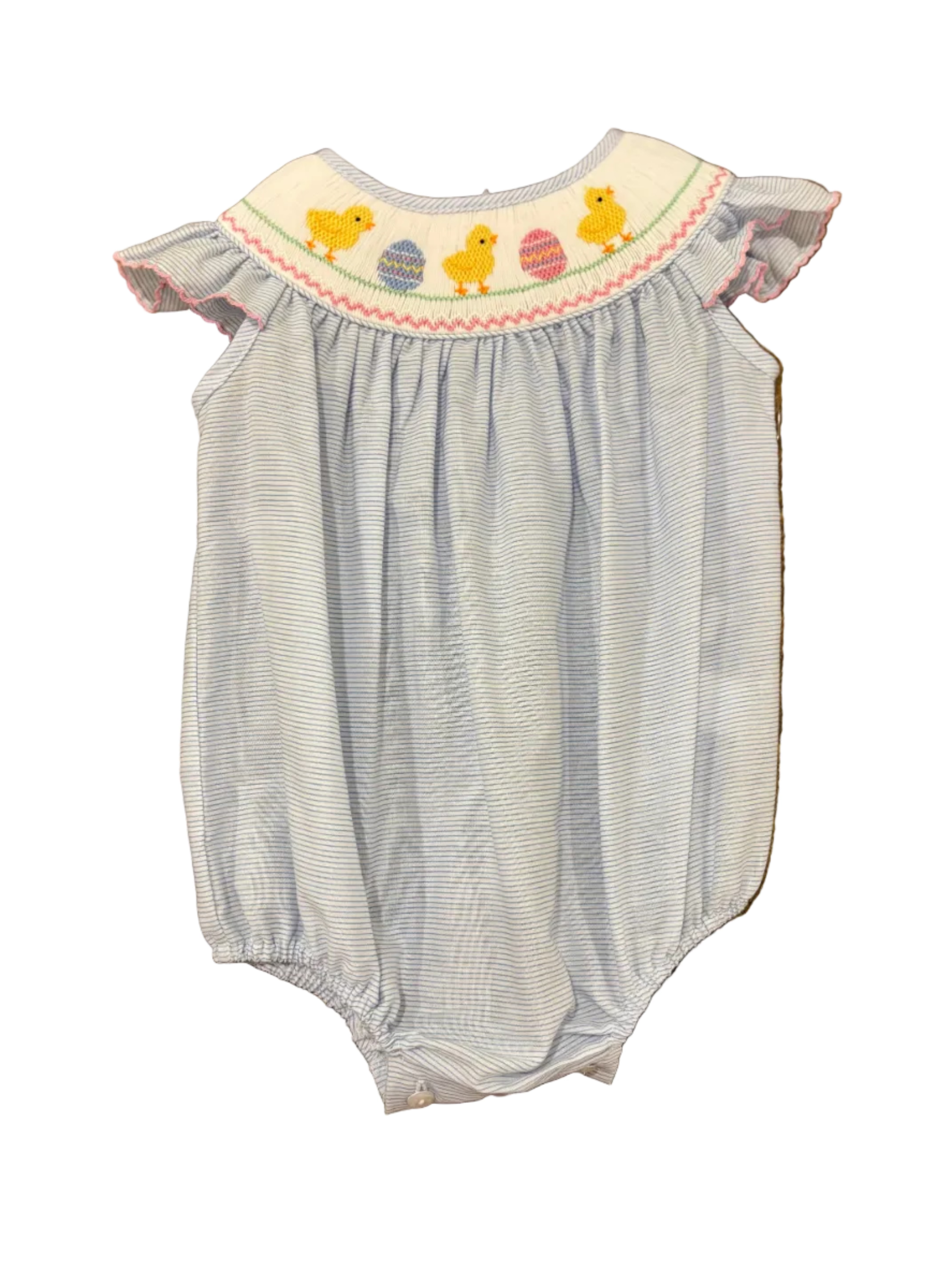 Celebrate spring in style with this charming Easter Chicks bubble featuring delicate light blue tiny stripes and whimsical angel wing bishop detailing. Designed for active little ones, this bubble includes a convenient insert for easy dressing and diaper changes. The soft, breathable fabric keeps your child comfortable throughout the day, while the playful Easter-inspired design makes it perfect for holiday celebrations, family photos, or everyday wear. An essential addition to any child's seasonal wardrobe.