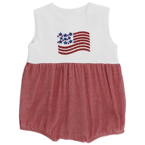 Celebrate your little one's style with our Flag Knit Infant Bubble! Made for kids with a love for fun and fashion, this adorable bubble features a patriotic flag design knit into the fabric. Perfect for showing off their love for their country while staying stylish and comfortable.