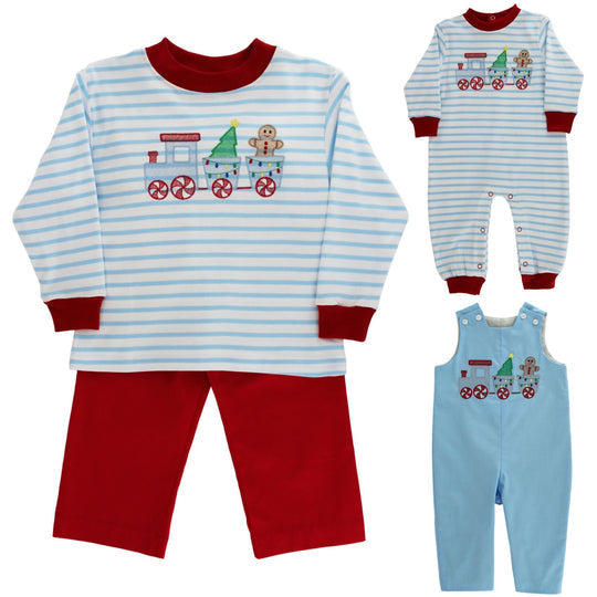 Bring holiday joy to his wardrobe with the Gingerbread Express Boys Pant Set! The long sleeve top showcases a fun gingerbread train that is perfectly paired with comfy coordinating pants. Whether he is off to a school event or lounging at home, this set offers cozy comfort and festive flair. Crafted from soft knit fabric with a relaxed fit, it’s ideal for making sweet holiday memories in style.