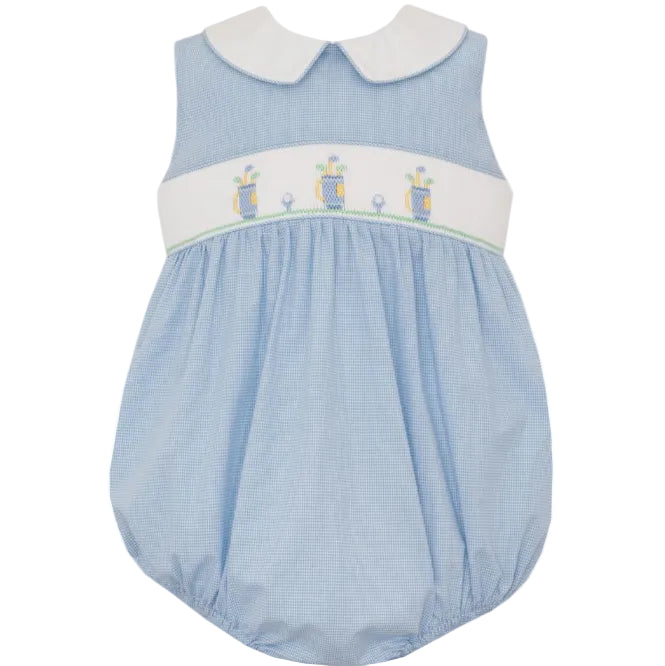Classic and playful, the Golf Boys Light Blue Microcheck Sleeveless Boy’s Bubble is perfect for little ones who love sporty style. Featuring a light blue microcheck pattern with charming golf-themed details, this sleeveless bubble offers a timeless look while keeping baby cool and comfortable. Ideal for warm days, outings, or special occasions, it combines classic charm with playful character.