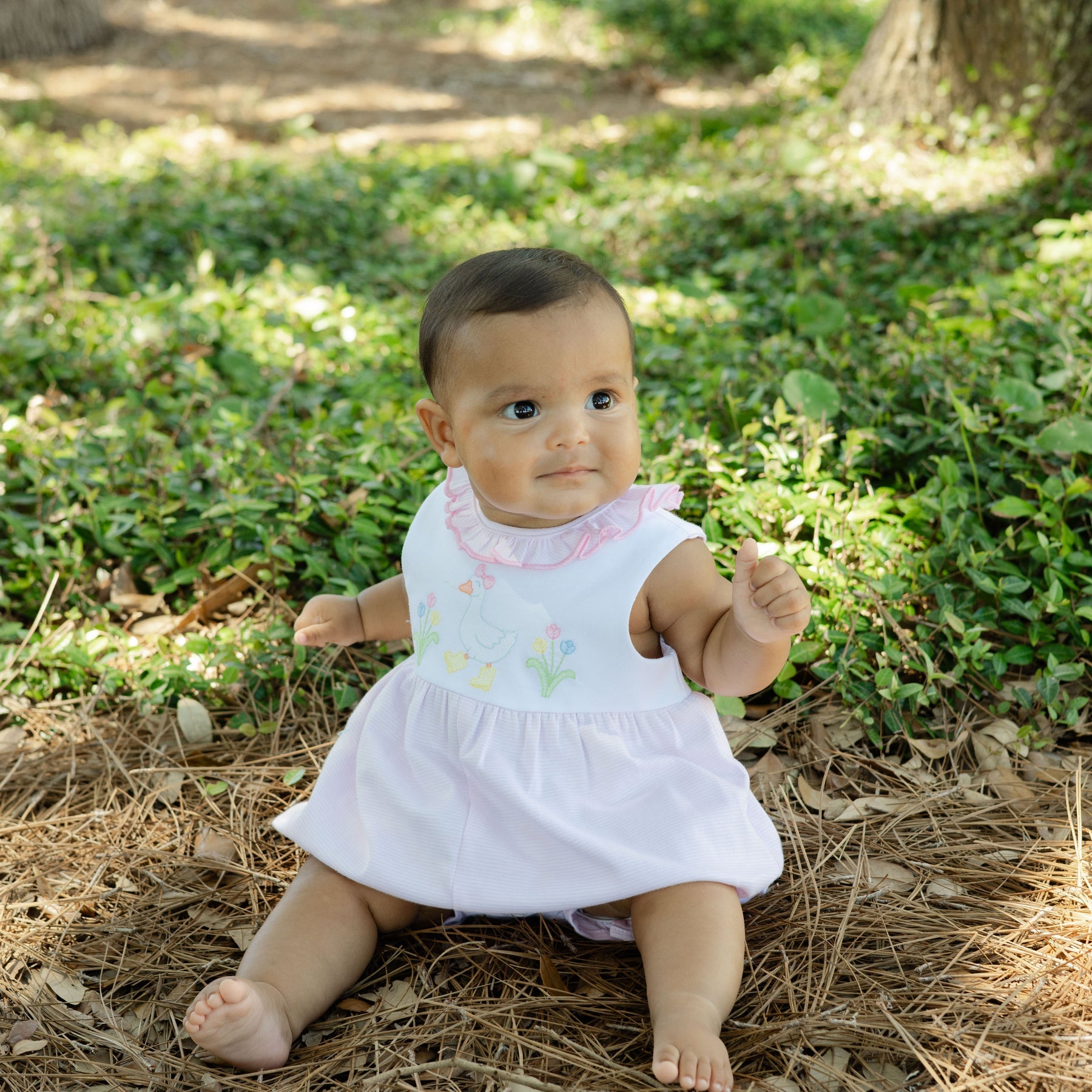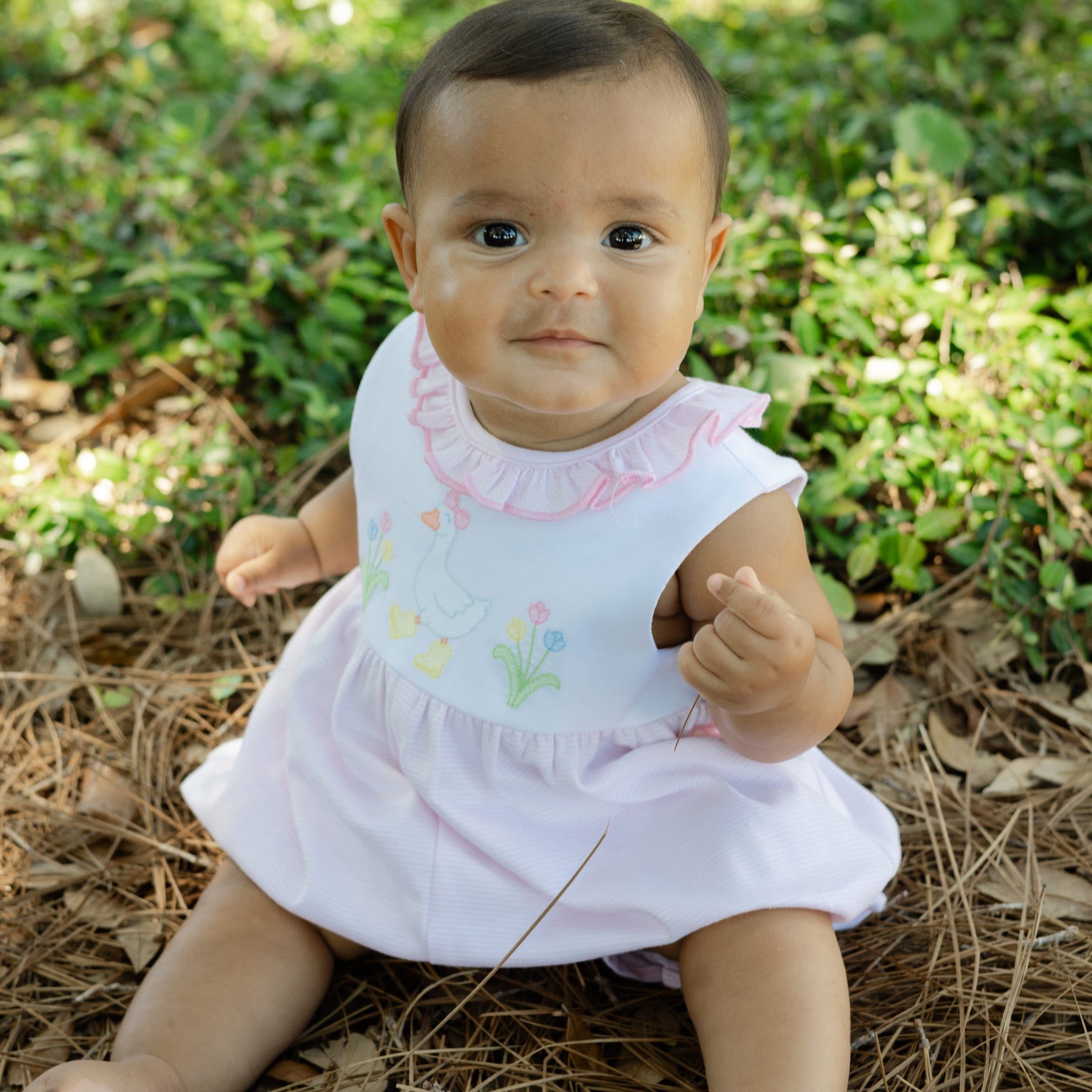 This Goose in Boots romper combines cozy knit fabric with lighthearted embroidery. The charming geese in their tiny boots make it an instant favorite for spring events. Designed for comfort and easy dressing, it’s perfect for playdates, Easter brunch, or photo sessions.