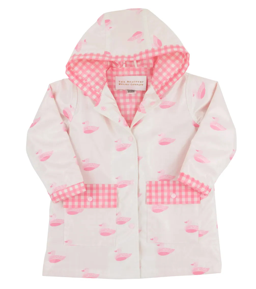 The Liquid Sunshine Slicker is back! Featuring errimack Quack Quacks with Palm Beach Pink lining, this jacket is sure to make even the gloomiest of days bright!
