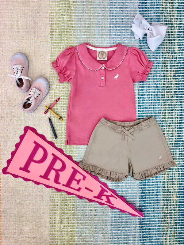 Maude's Peter Pan Collar Shirt & Onesie (Short Sleeve Pima) - Romany Rose/Worth Ave White