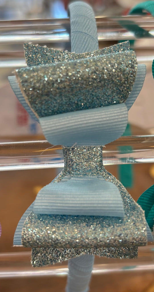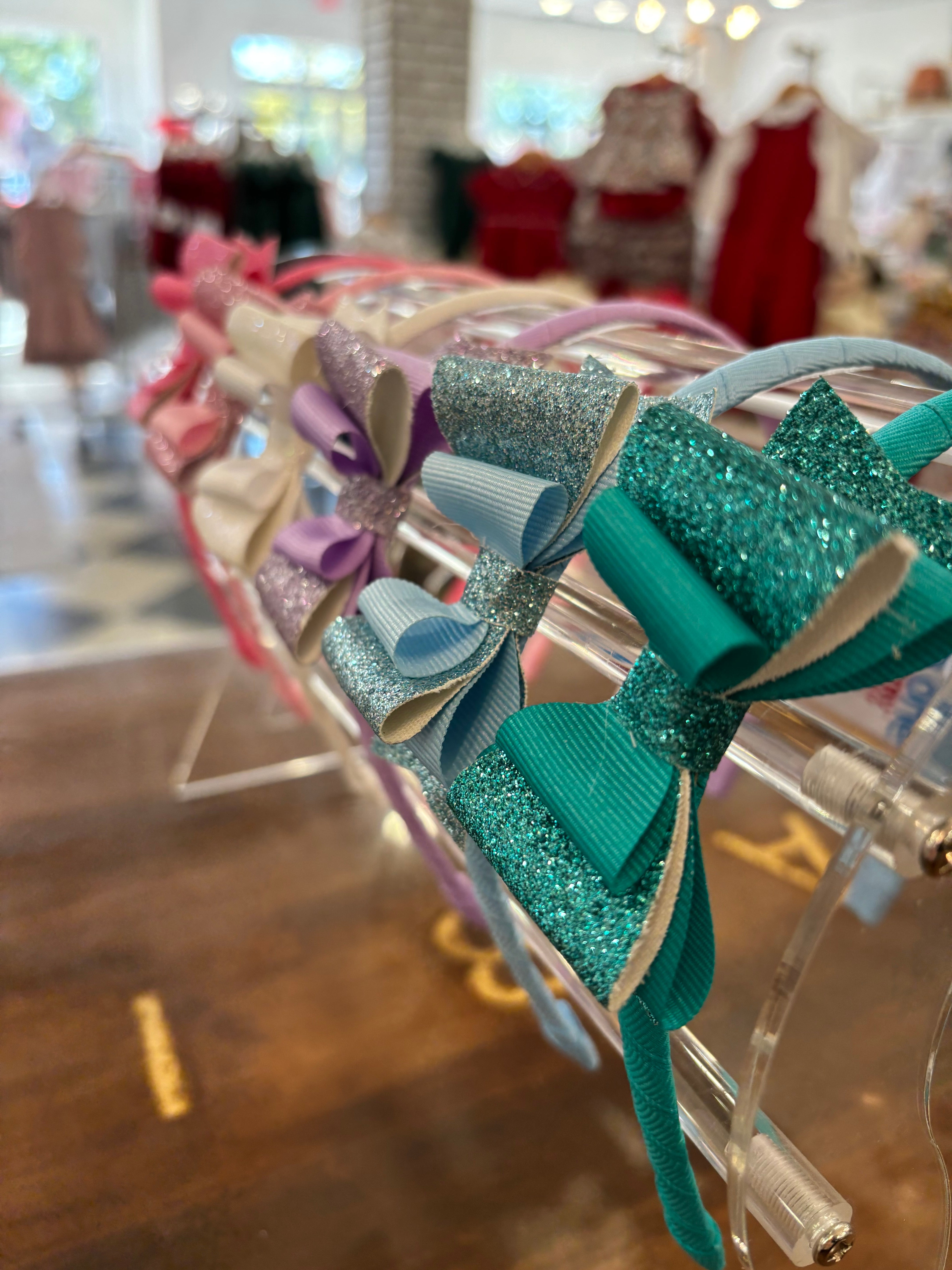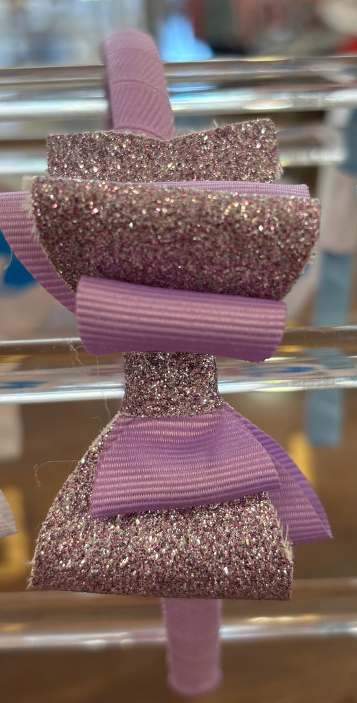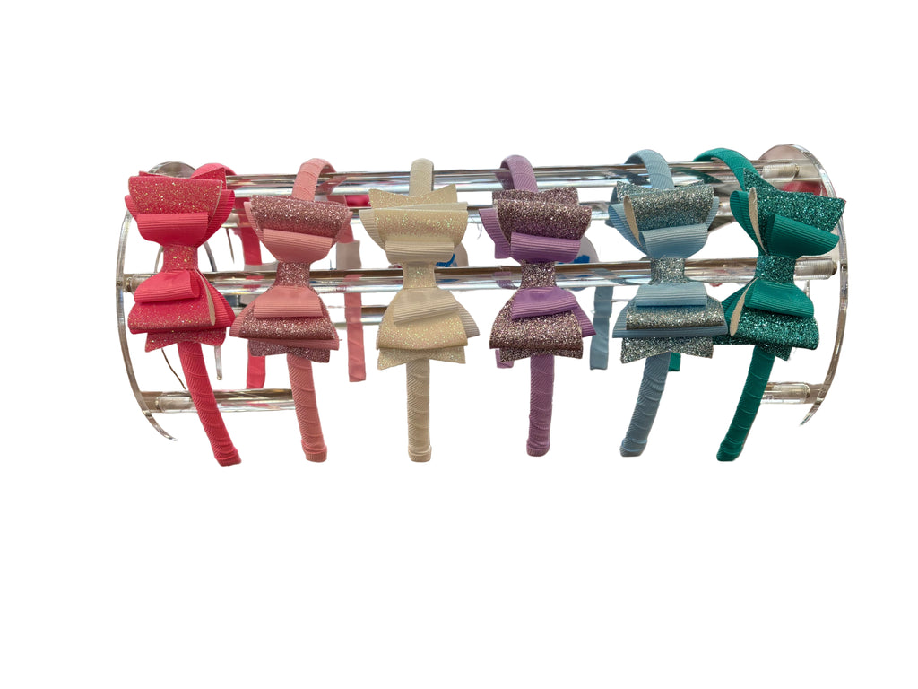 Medium Glitter/Grosgrain Stacked Bow Headband - BLU is backordered and will ship as soon as it is back in stock.