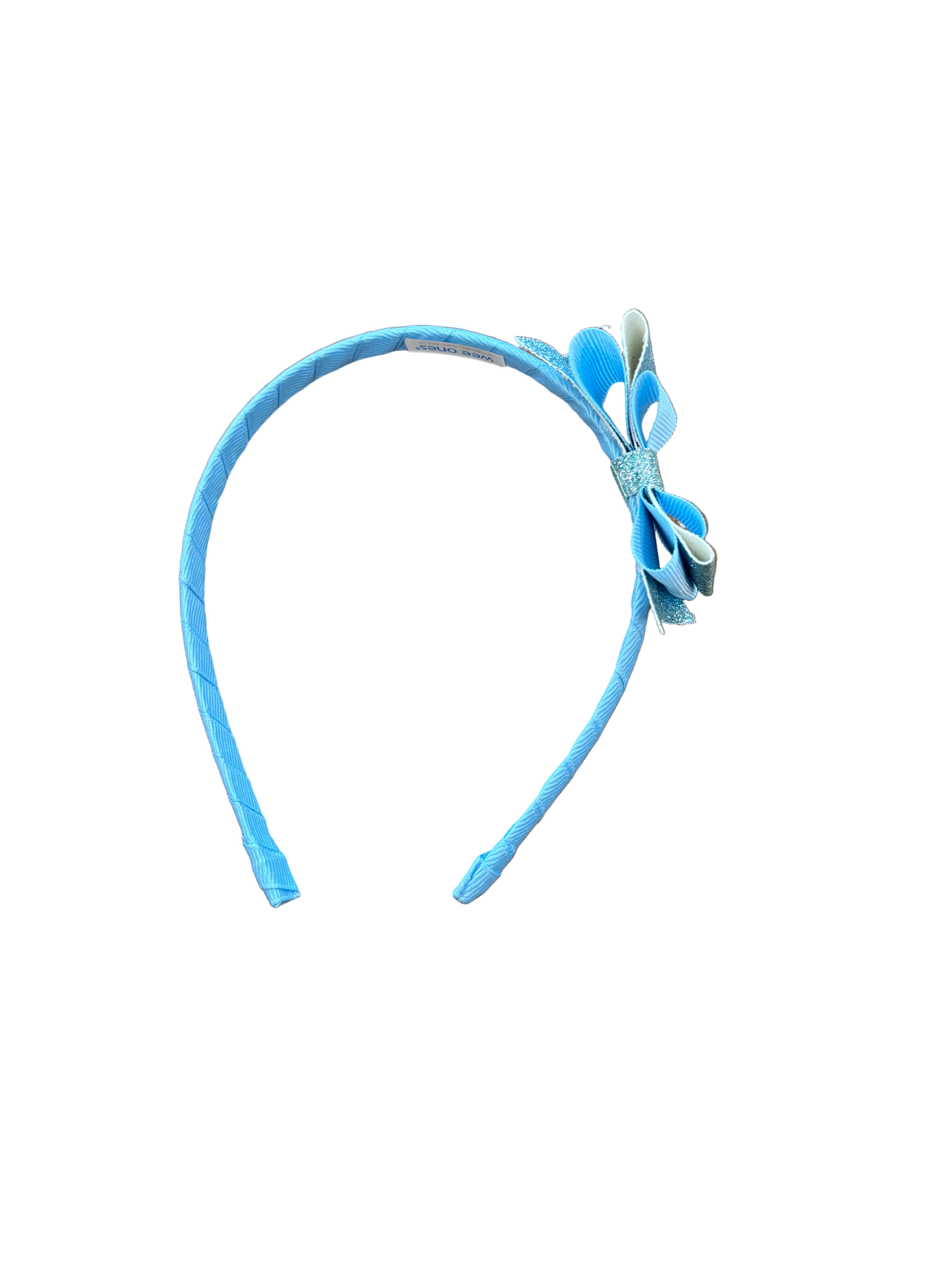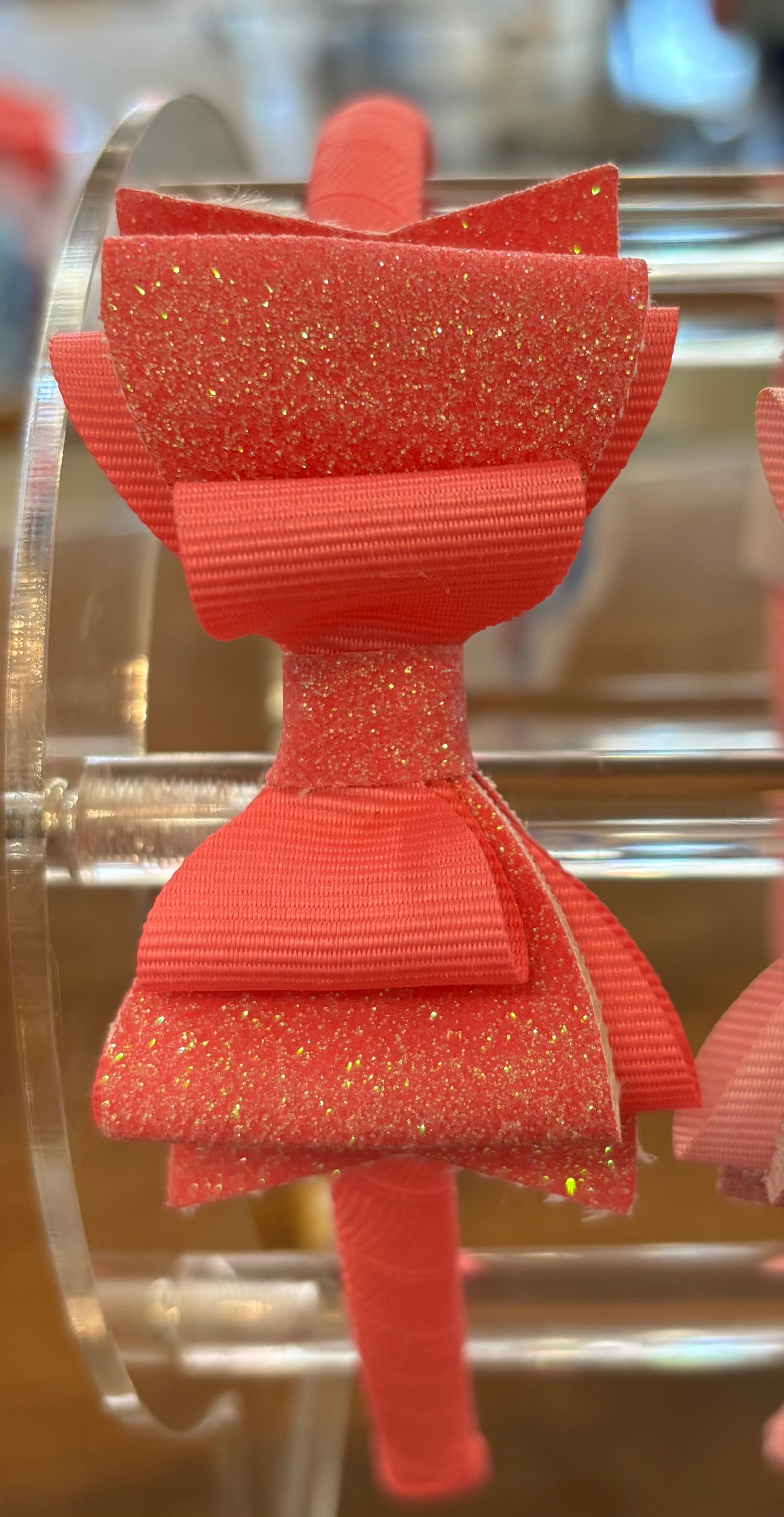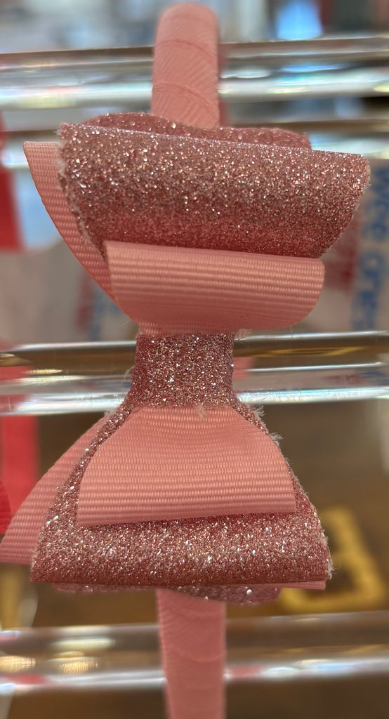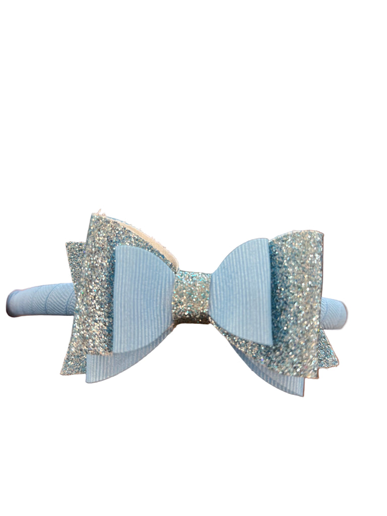Medium Glitter/Grosgrain Stacked Bow Headband - BLU is backordered and will ship as soon as it is back in stock.