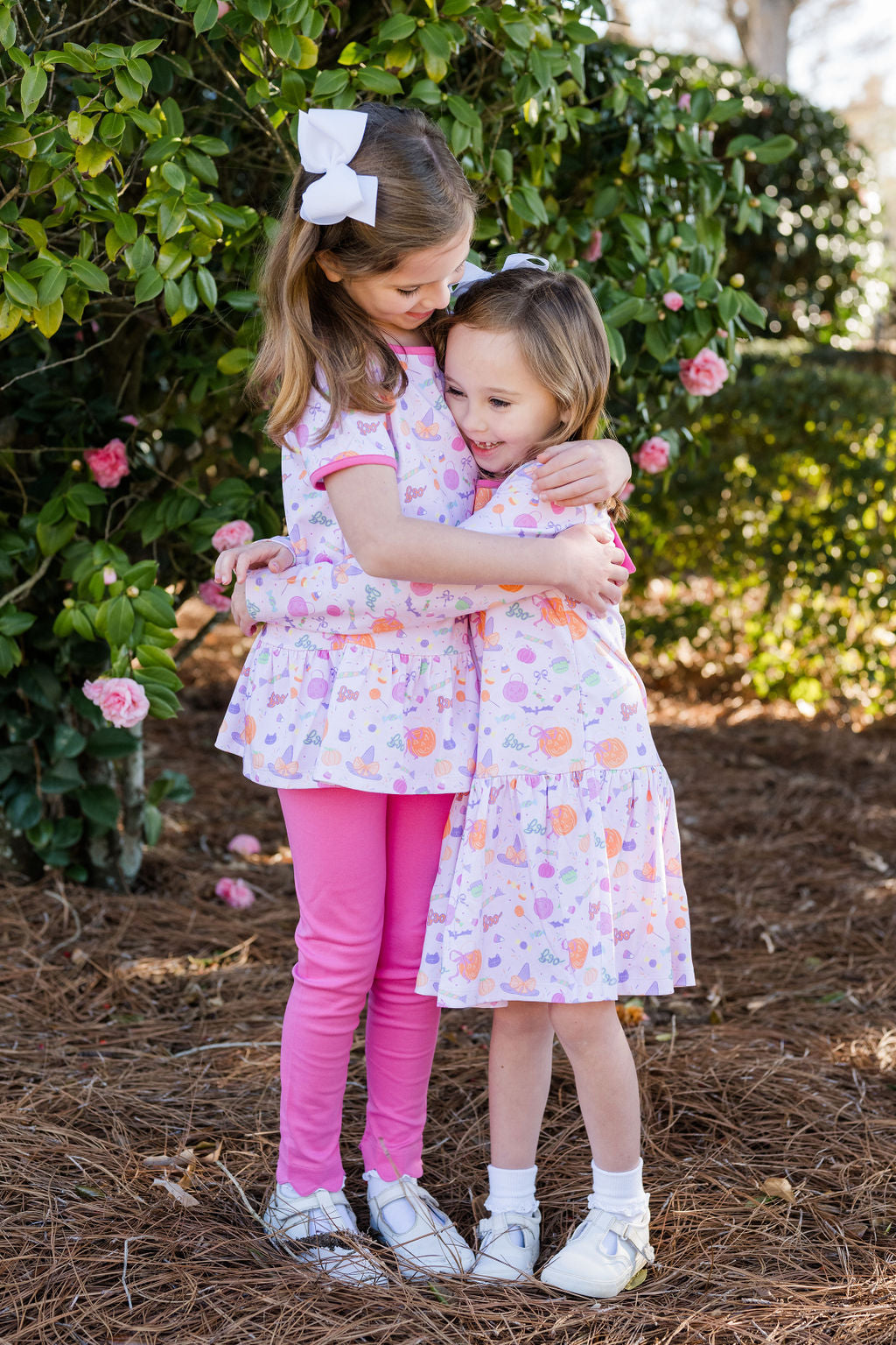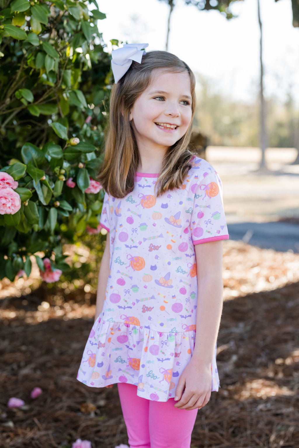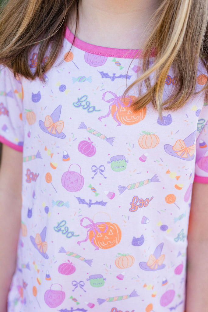 Get your little one ready for festive fun with the Peggie Peplum Legging Set, Tricks & Treats! This playful outfit features a charming peplum top paired with cozy leggings, perfect for running, jumping, and all the trick-or-treat adventures ahead. Soft, stretchy fabric keeps your child comfortable while the whimsical design adds a dash of seasonal magic to their day. Ideal for parties or pumpkin patch outings, this set blends style and comfort in one adorable package.