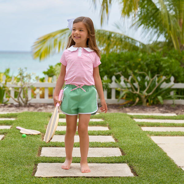 Elevate her everyday style with our Prepletic™ Preppy Polo featuring beautiful Pier Party Pink Stripe beautifully accented with Worth Avenue White trim. Crafted from premium performance fabric with classic polo styling and a comfortable fit, this versatile piece transitions effortlessly from the golf course to casual outings and weekend adventures. A wardrobe essential that brings timeless elegance and athletic functionality to every occasion.