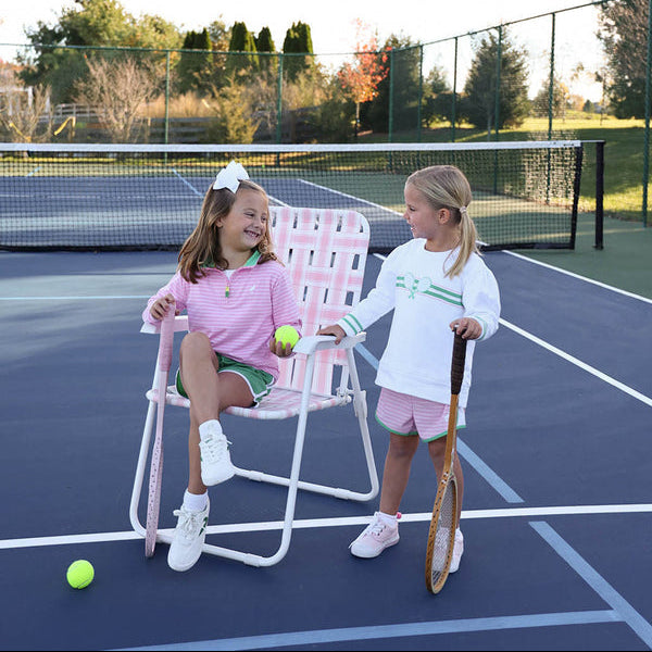 Puff Sleeve Cassidy Comfy Crewneck Worth Avenue White with Gibson Island Green & Tennis Racquets