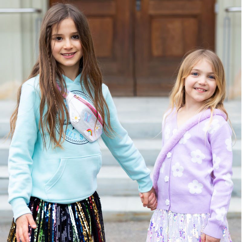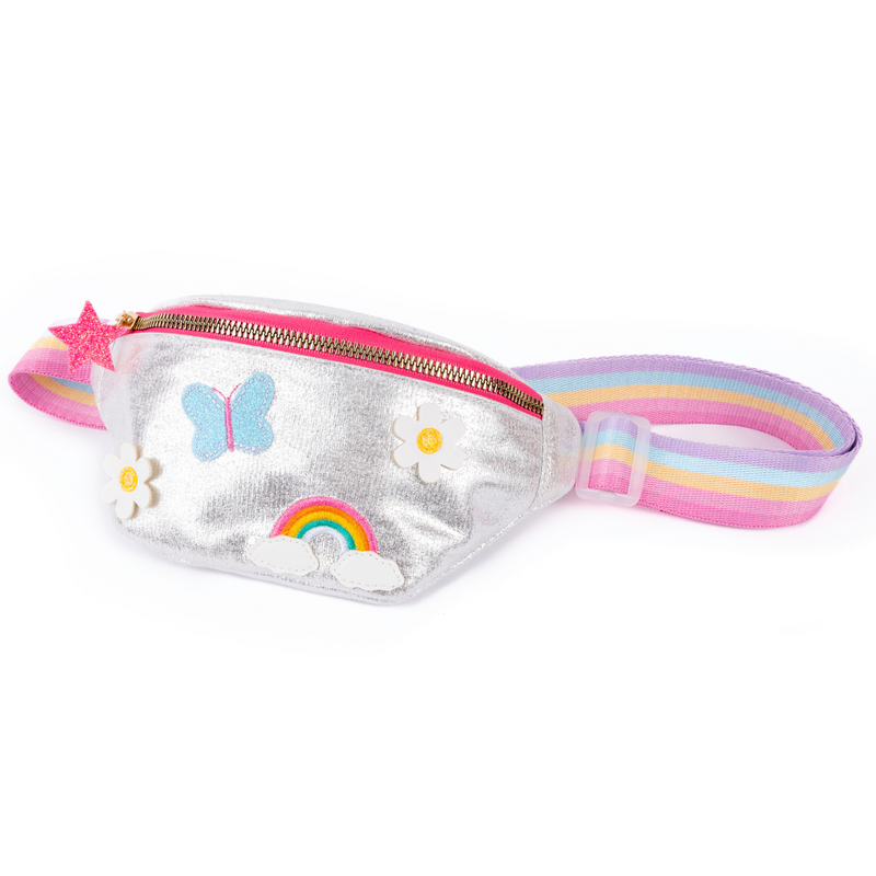 Designed with active, on-the-go kids in mind, this fanny pack has an adjustable rainbow strap for a perfect fit around the waist or across the chest. It closes with a smooth zipper and is topped off with a glittery star-shaped zipper pull, because every adventure deserves a little sparkle.