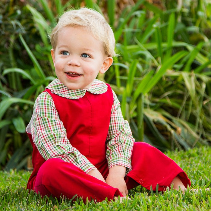 This Red Corduroy John John is an heirloom-quality piece that radiates old-world charm in your child's closet. Soft, fine corduroy is used to create comfort and durability for daily wear. The bright red color brings celebratory flair, ideal for holiday gatherings or special occasions. With snap closures for easy diaper changes, this do-everything outfit can be dressed over a collared shirt or on its own. A functional must-have that balances tradition and everyday convenience.