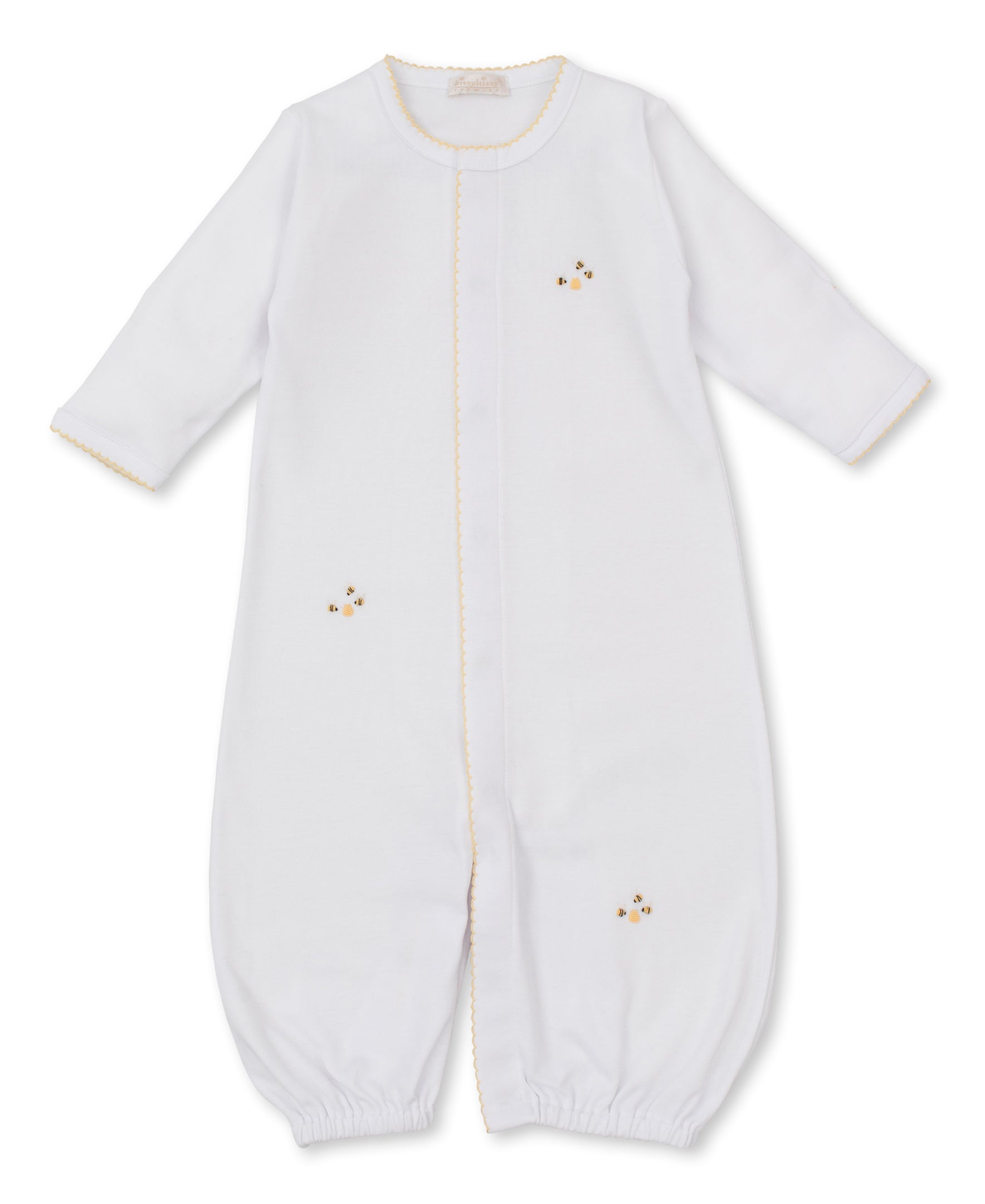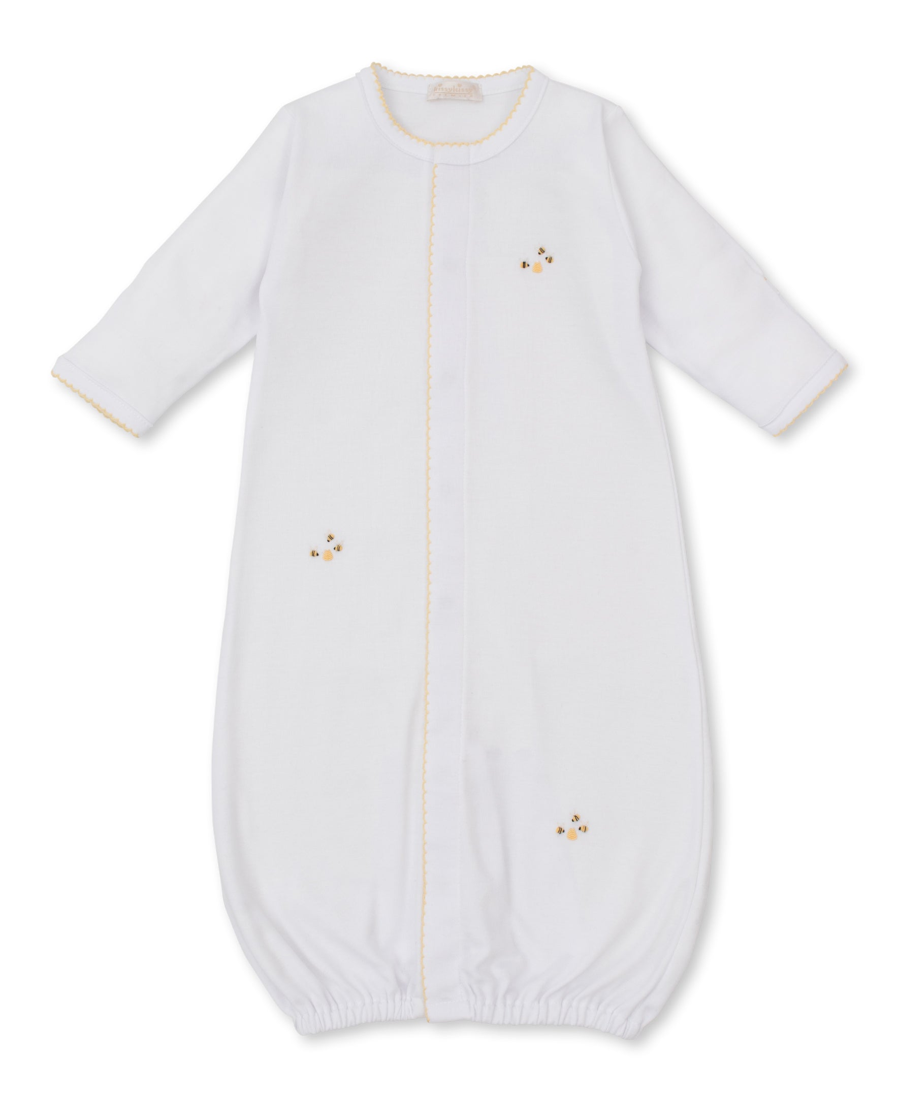 Introducing the versatile SCE Bee Hive Convertible Gown, featuring hand embroidery details for a touch of elegance. This gown is perfect for your little one, with a convertible design that easily adapts to their growing needs. Crafted with quality materials, it provides comfort and style for your baby's everyday wear.